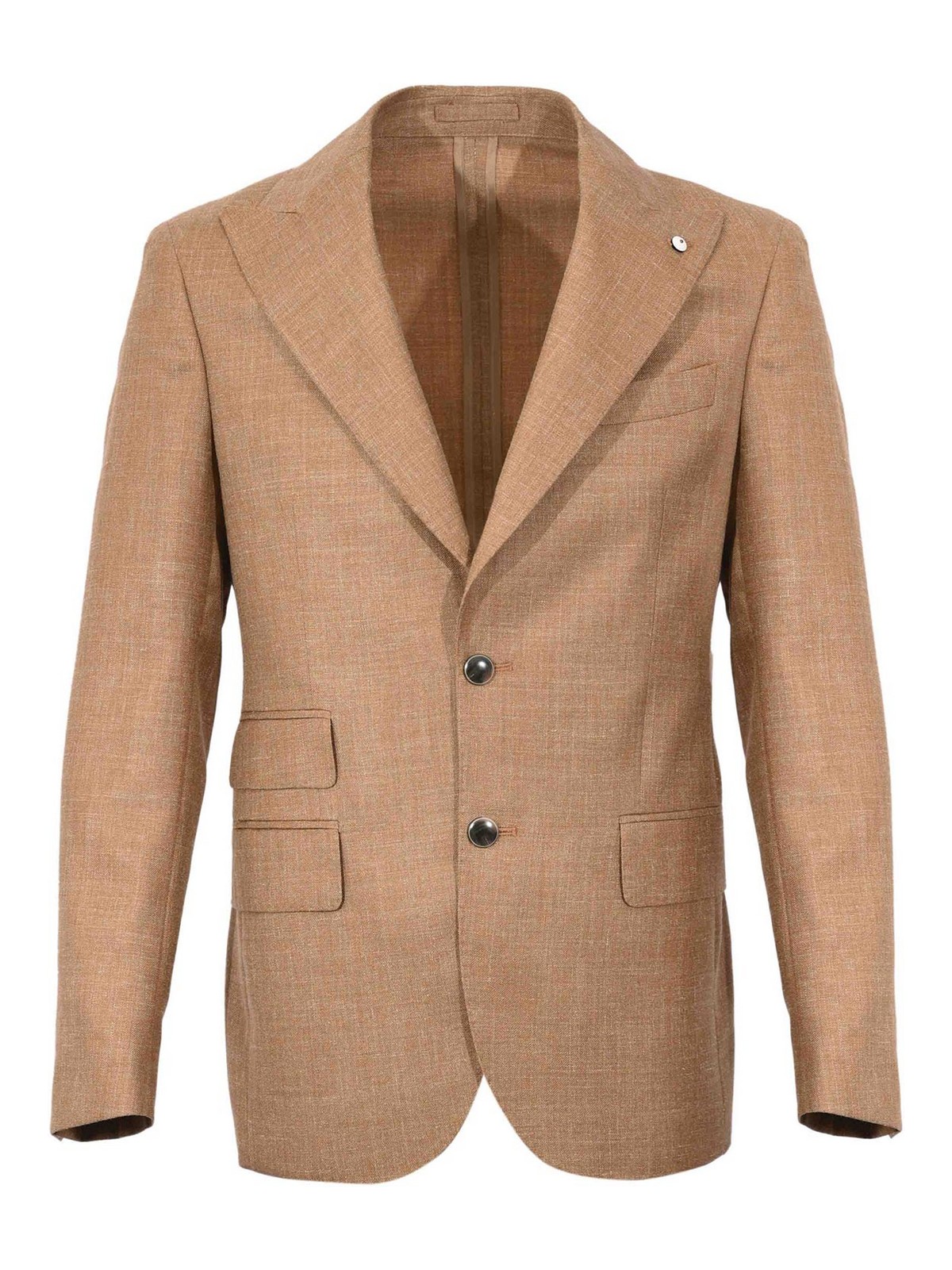 Chaqueta de lana, seda y lino para hombre, l.b.m. 1911, modelo de botonadura sencilla, tejido: mezcla de lana, seda y lino, estampado: color liso, mangas: largas con botones en los puños, cuello: cuello con solapa clásica, cierre: cierre de un solo pecho con botones, bolsillos: un bolsillo ribeteado en el pecho y dos bolsillos con solapa en la parte delantera, detalles: alfiler decorativo en la solapa, sastrería, forrado: no, ajuste: normal