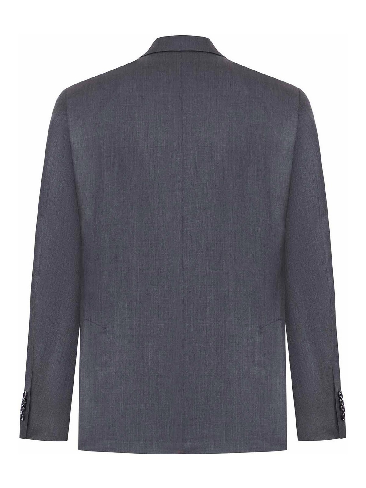blazer cruzado, cierre frontal con seis botones, solapa ancha en visera, broche decorativo en la solapa, bolsillo ribeteado en el pecho, dos bolsillos con solapa en la parte delantera, manga larga con puños abotonados, forro a juego, corte regular, color: gris