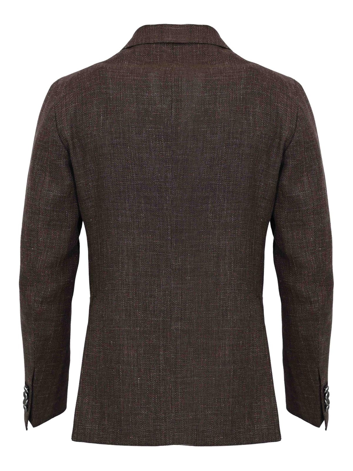 Chaqueta para hombre en mezcla de lino y algodón, cortador, modelo 1smc20k, tejido: mezcla de lino y algodón, estampado: microtejido melange, mangas: largas con botones en la parte inferior, cuello: con solapa en pico, cierre: cruzado con botones, bolsillos: un bolsillo ribeteado en el pecho y dos bolsillos de parche en la parte delantera, detalles: icónico broche en la solapa, aberturas traseras, forrado: no, corte: normal