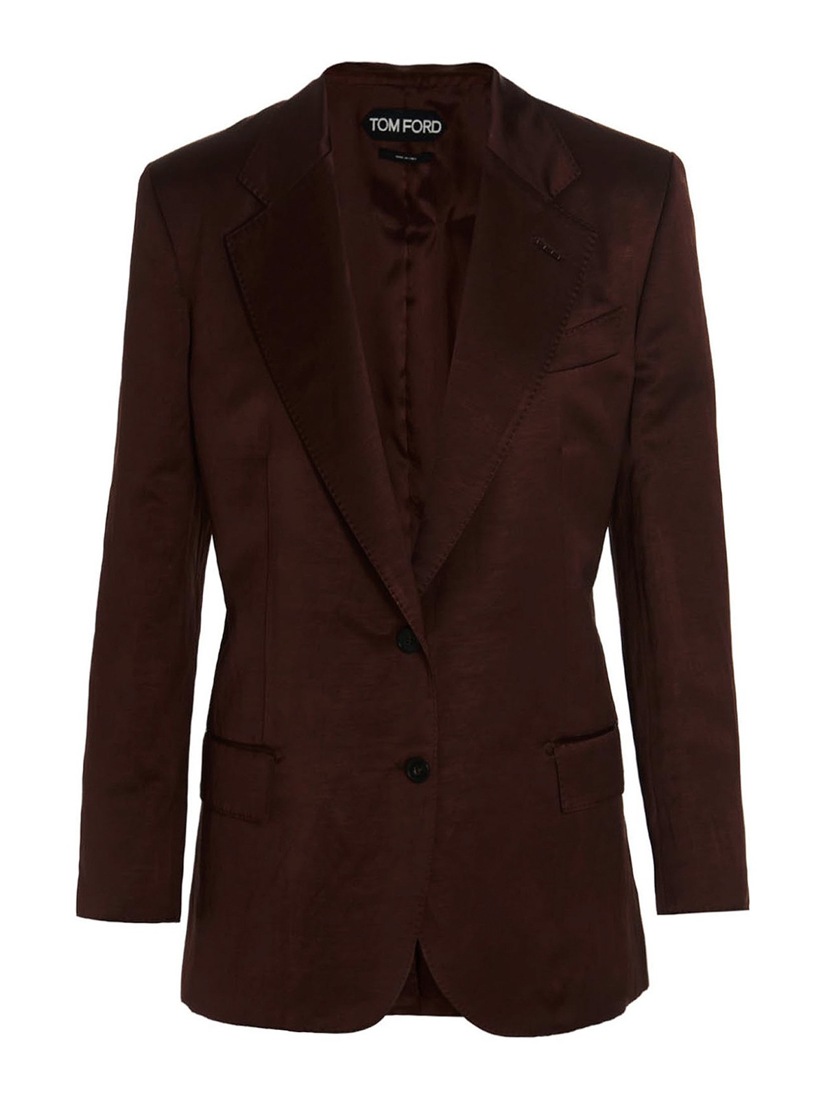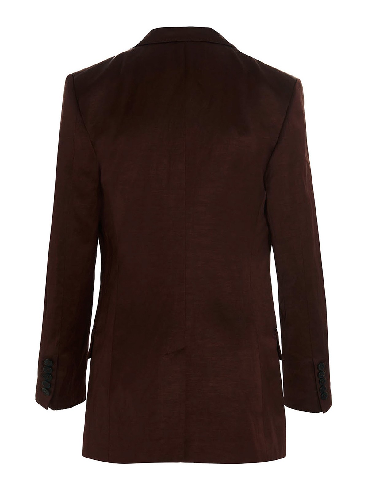Chaqueta tipo blazer en mezcla de viscosa y lino con botonadura sencilla, botones, mangas largas, hombreras, cuello en V, forro interior y abertura en la espalda.