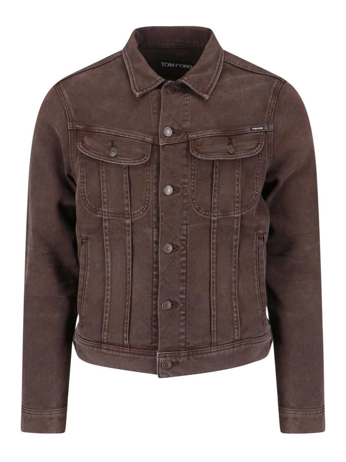 Chaqueta vaquera Tom Ford, de algodón acanalado marrón, cuello clásico, cierre con botones en la parte delantera, manga larga, dos bolsillos con solapa con botones en la parte delantera, botones en los puños, etiqueta con el logotipo en la parte delantera, parche con el logotipo en la parte trasera, dobladillo curvo.