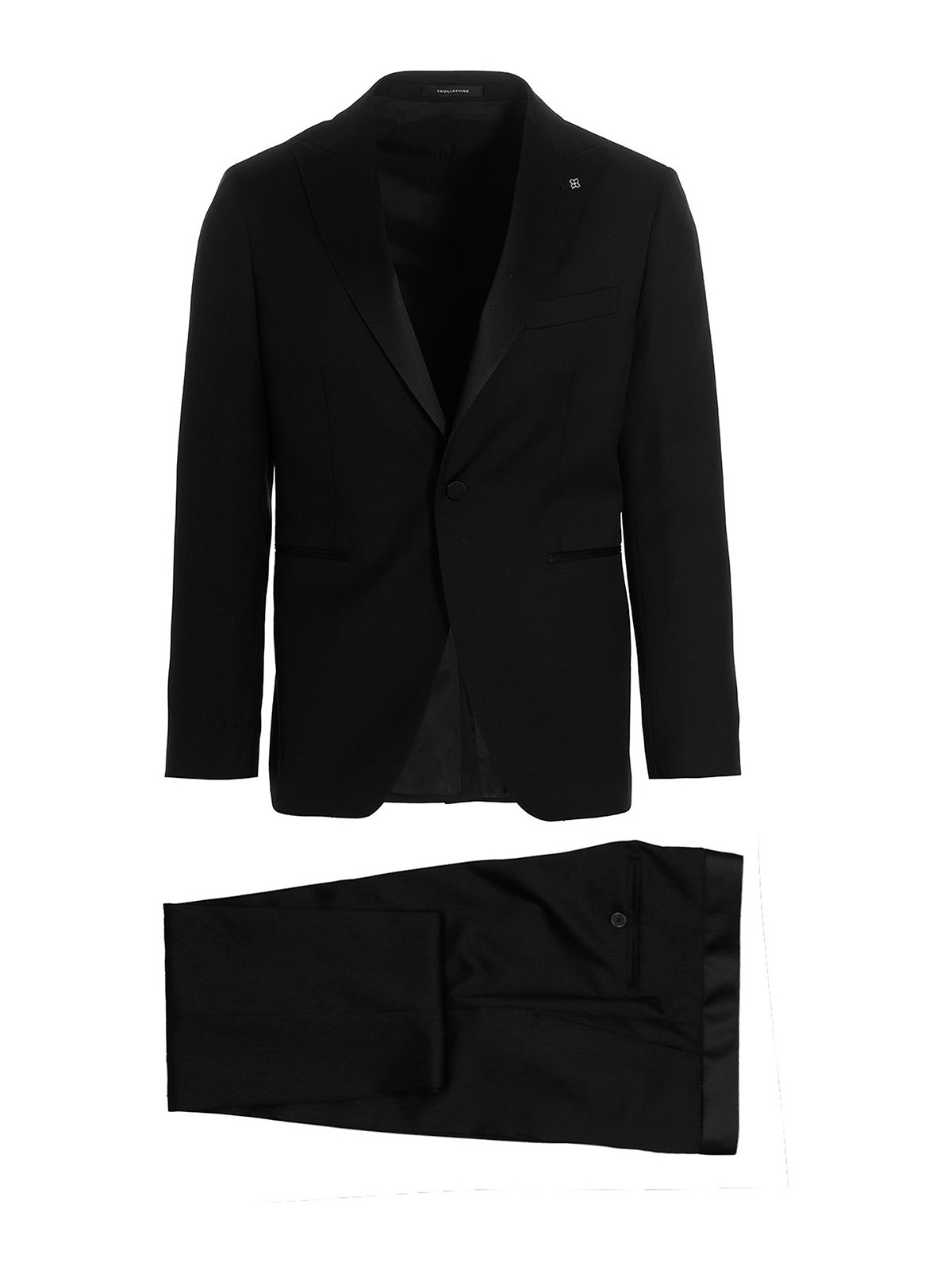 Vestido estilo esmoquin de lana fresca con chaqueta con solapas en pico y cierre de un botón, pantalones clásicos con cierre de gancho y cremallera