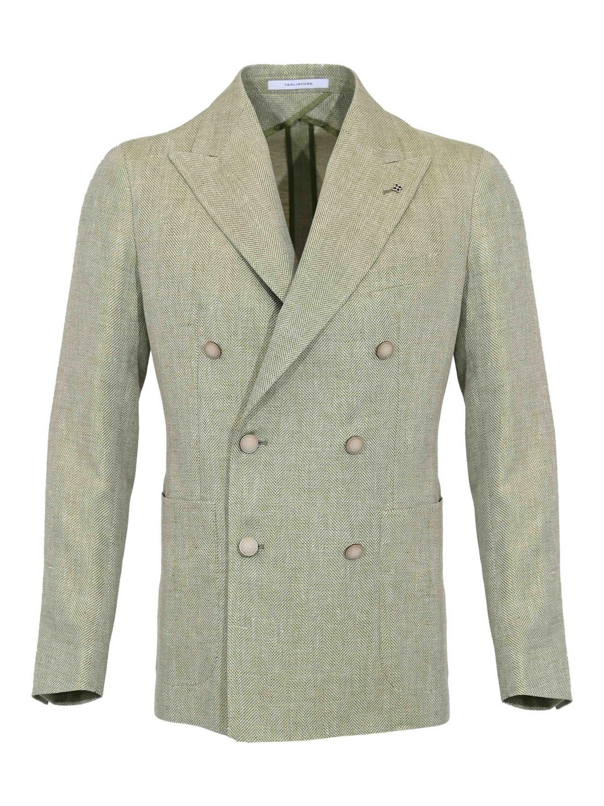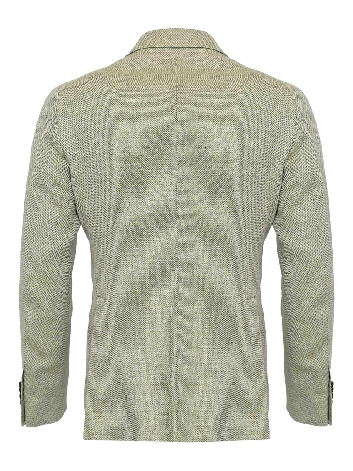 Chaqueta para hombre en mezcla de lino y algodón, cortador, modelo 1smc20k, tejido: mezcla de lino y algodón, estampado: espiga, mangas: largas con botones en la parte inferior, cuello: con solapa en pico, cierre: cruzado con botones, bolsillos: un bolsillo ribeteado en el pecho y dos bolsillos de parche en la parte delantera, detalles: icónico broche en la solapa, aberturas traseras, forrado: no, corte: normal