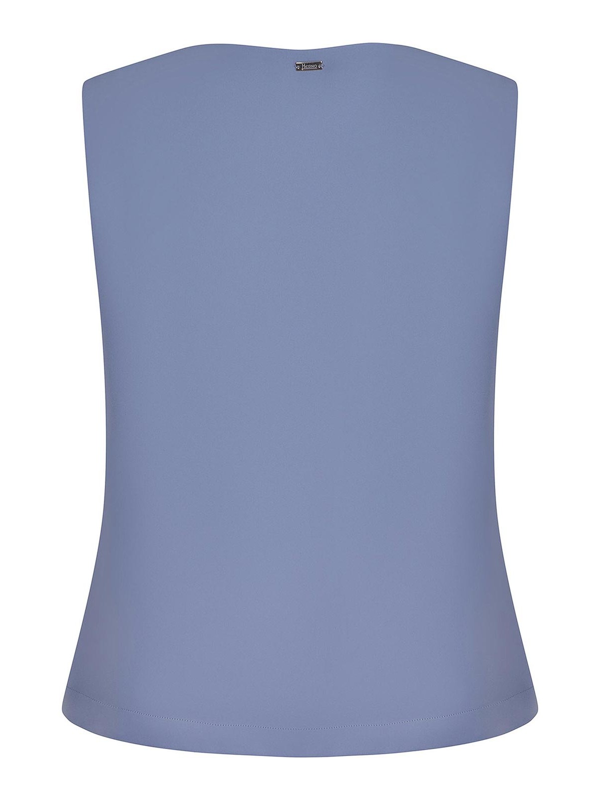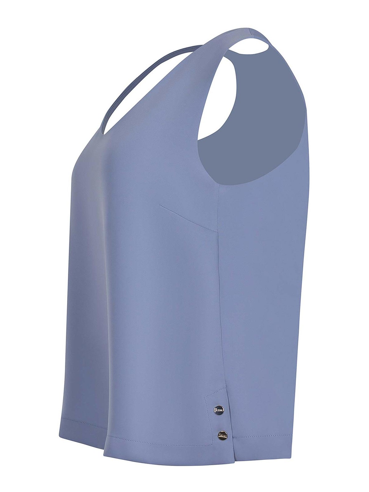 Blusa Herno confeccionada en satén de color cerúleo. Cuello en V. Tirantes anchos. Detalles con aberturas laterales con botones de la marca. Placa con el logotipo de metal dorado en la parte posterior del cuello. 100% viscosa. Hecho en Italia.