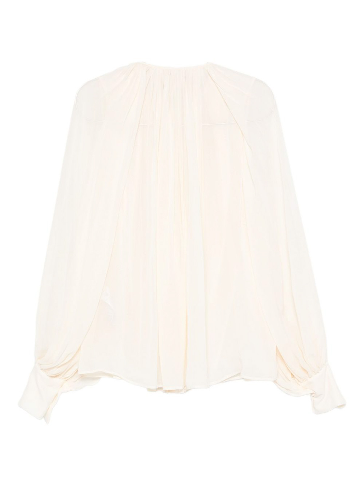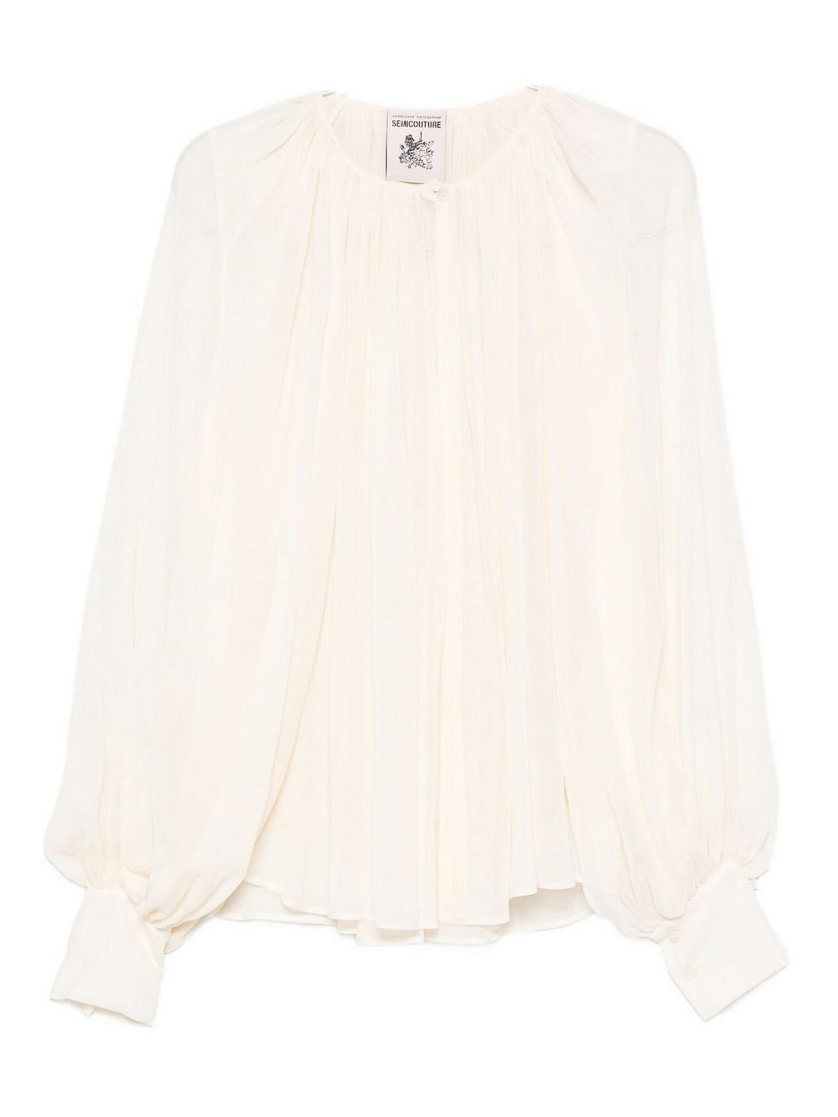 Mangas largas plisadas blancas, mangas con botones, cuello redondo