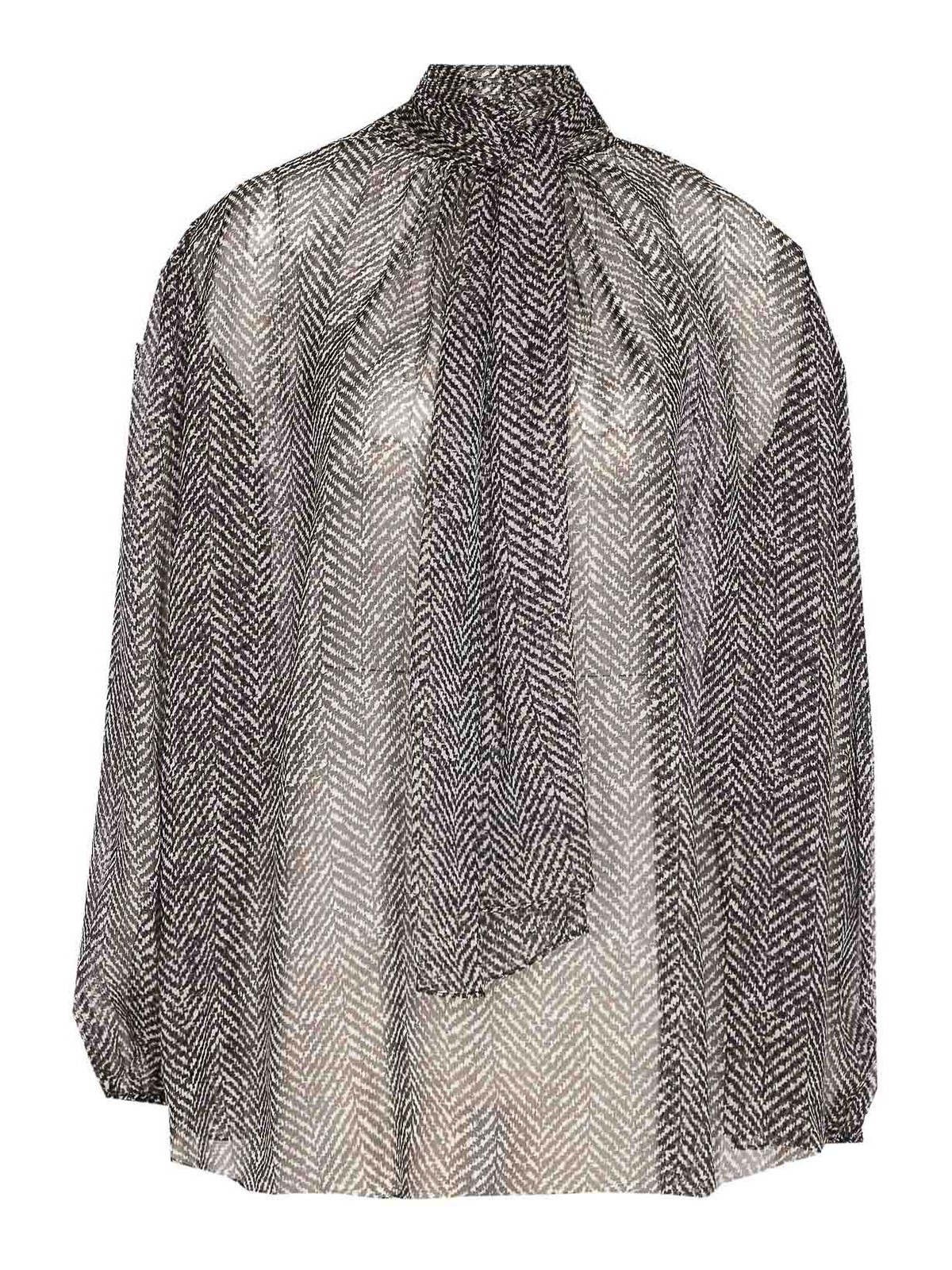 Blusa Dolce&gabbana de cuello alto con botones en el cuello, lazo, manga larga, estampada Nombre del diseñador: negro