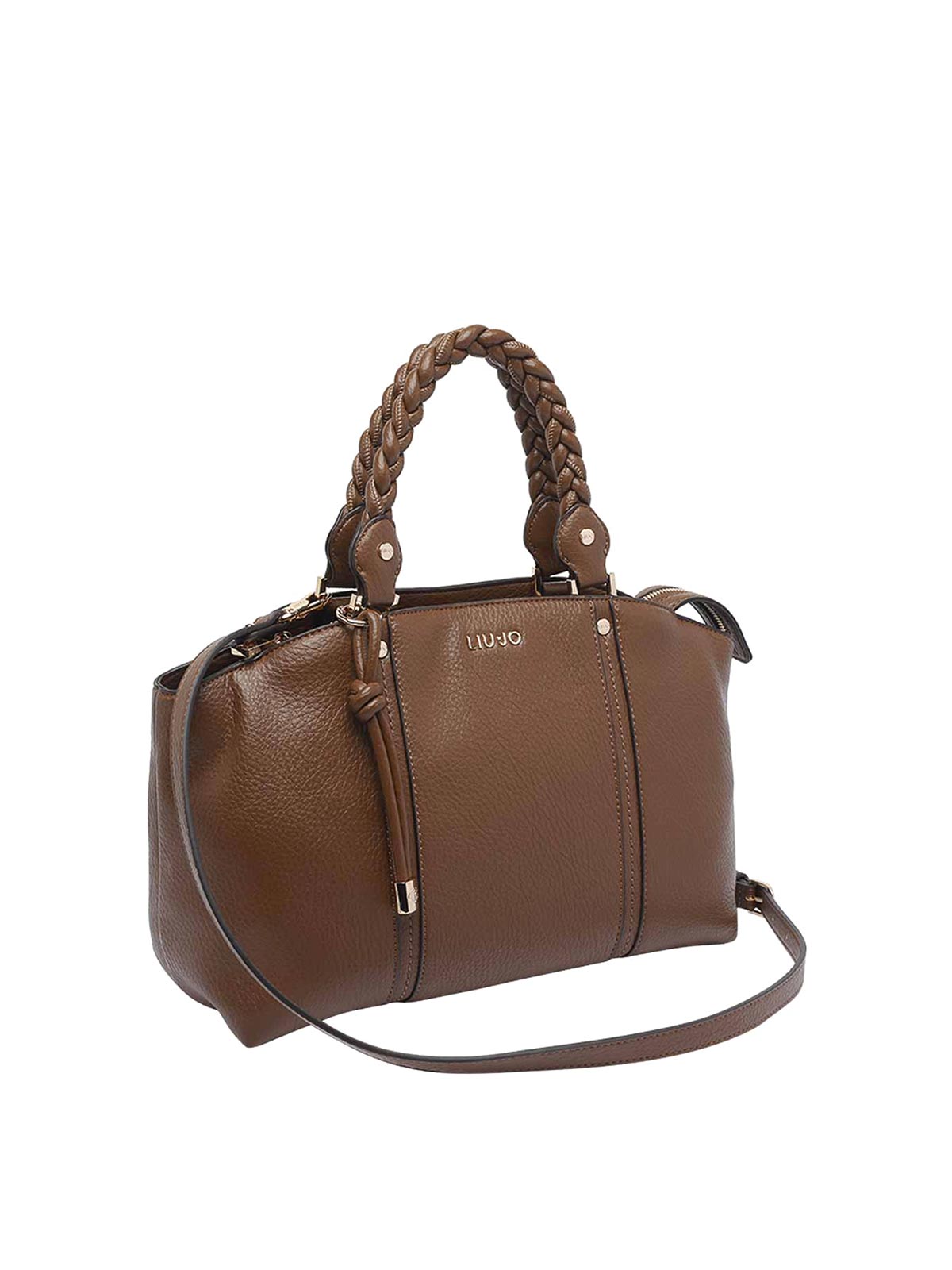Bolso tipo cartera con el logotipo marrón de Liu jo, bolsillos con cremallera y bolsillo magnético con cremallera, correa adaptable y extraíble, logotipo frontal, nombre