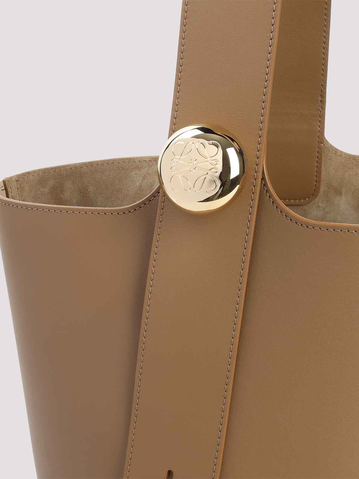 Bolso de hombro mediano Loewe con piel de roble y guijarros, bolso de piel de roble puro, ajustable en la parte superior, tono, botón en la parte superior, abotonado en la parte superior, diseño de cubo