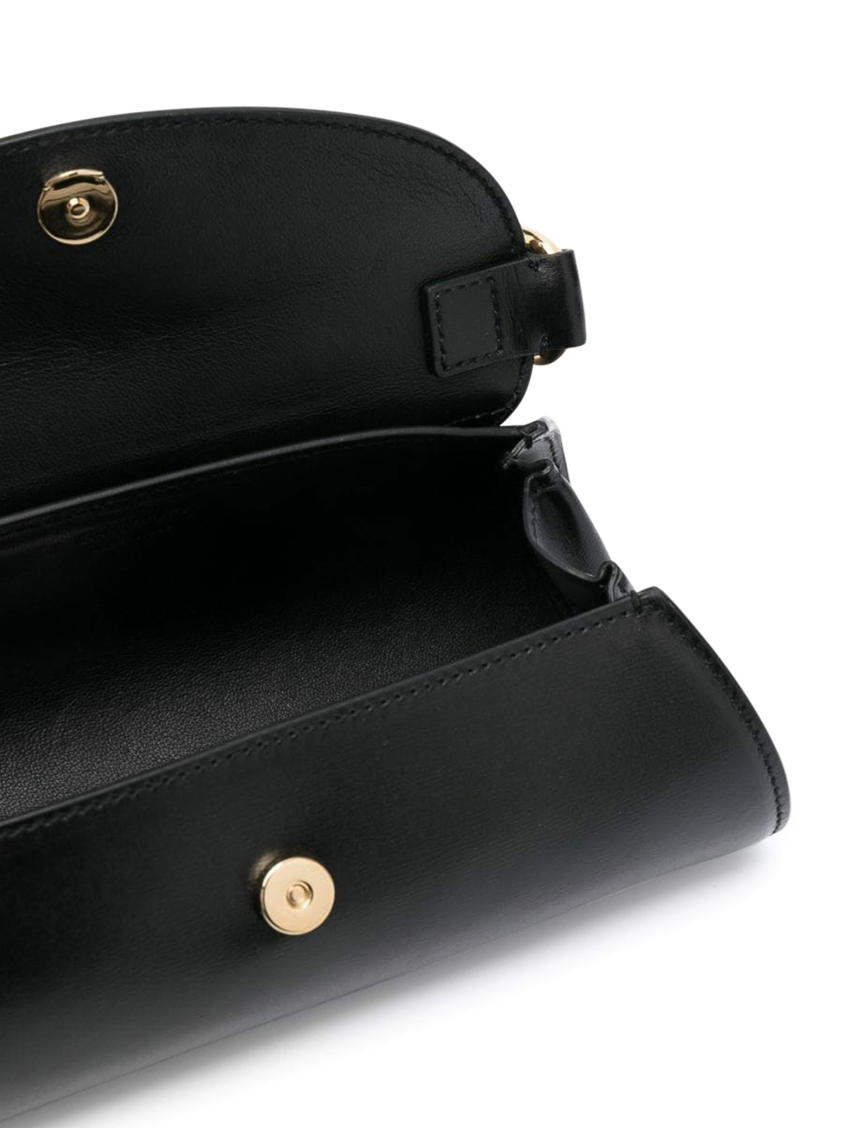 logotipo de piel de becerro en letras, asa plana, correa de hombro ajustable, solapa en la parte superior, cierre magnético, compartimento único
