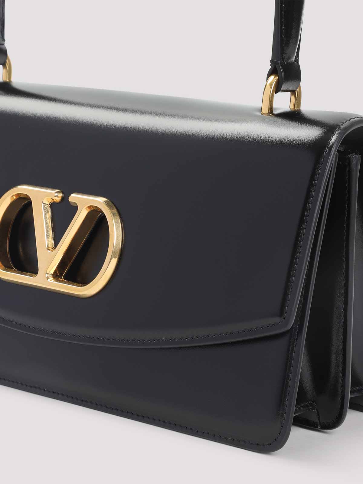 Bolso Valentino garavani de piel de becerro negra con asa superior. Bolso de piel de becerro negra pura, asa de piel de becerro en la parte superior, cierre con solapa en la parte delantera, logotipo en V metálico en tono dorado en la parte delantera, dos compartimentos interiores. Herrajes dorados.