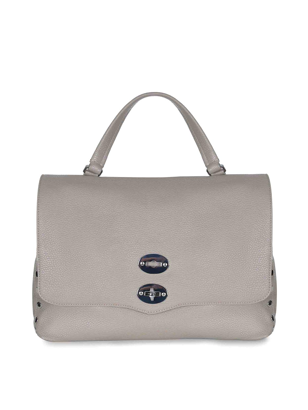 Bolso diario Zanellato postina hecho de piel martillada en color tórtola. Inserciones de metal plateado. detalle de tachuelas aplicado a los laterales. asa superior. solapa con cierre, cierre de giro de metal. Interior forrado. Parche con el logotipo de piel aplicado en el interior. bolsillo interno de pared con cremallera. doble compartimento. se puede llevar en la mano, en el hombro o en bandolera de piel extraíble y ajustable. multicolor. Medidas: altura 24 cm, ancho 35,5 cm, profundidad 17 cm, mango 11 cm, 100% piel hecha en Italia.