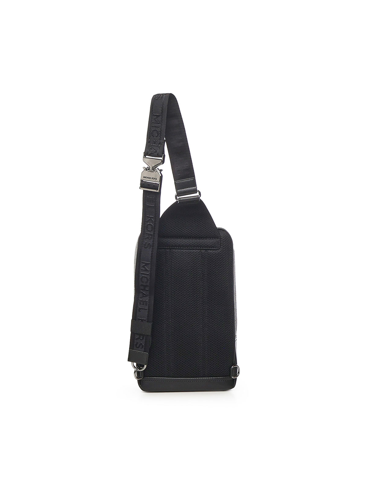 Bandolera con logotipo y correa de hombro ajustable con cremallera, color negro