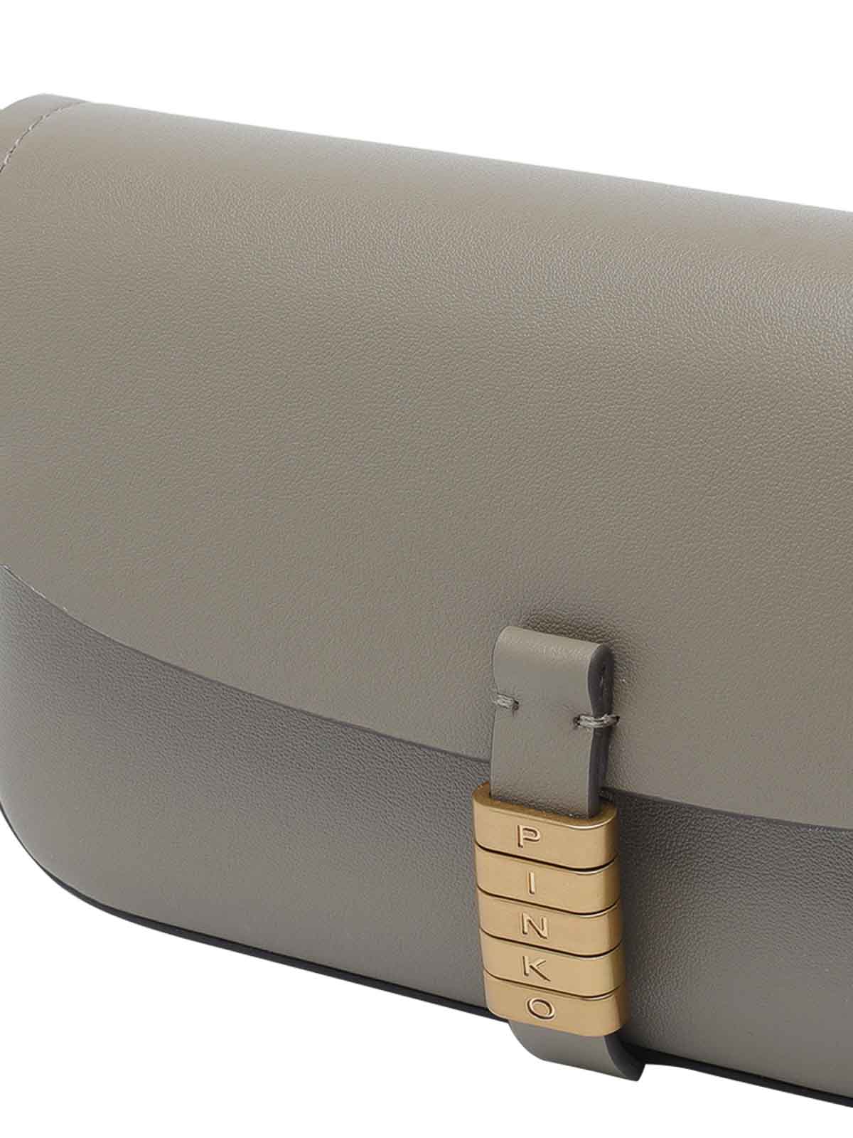 Bandolera con forma de sillín Pinko beige, cierre magnético, 3 ranuras, ajustable y extraíble, logotipo en la parte posterior
