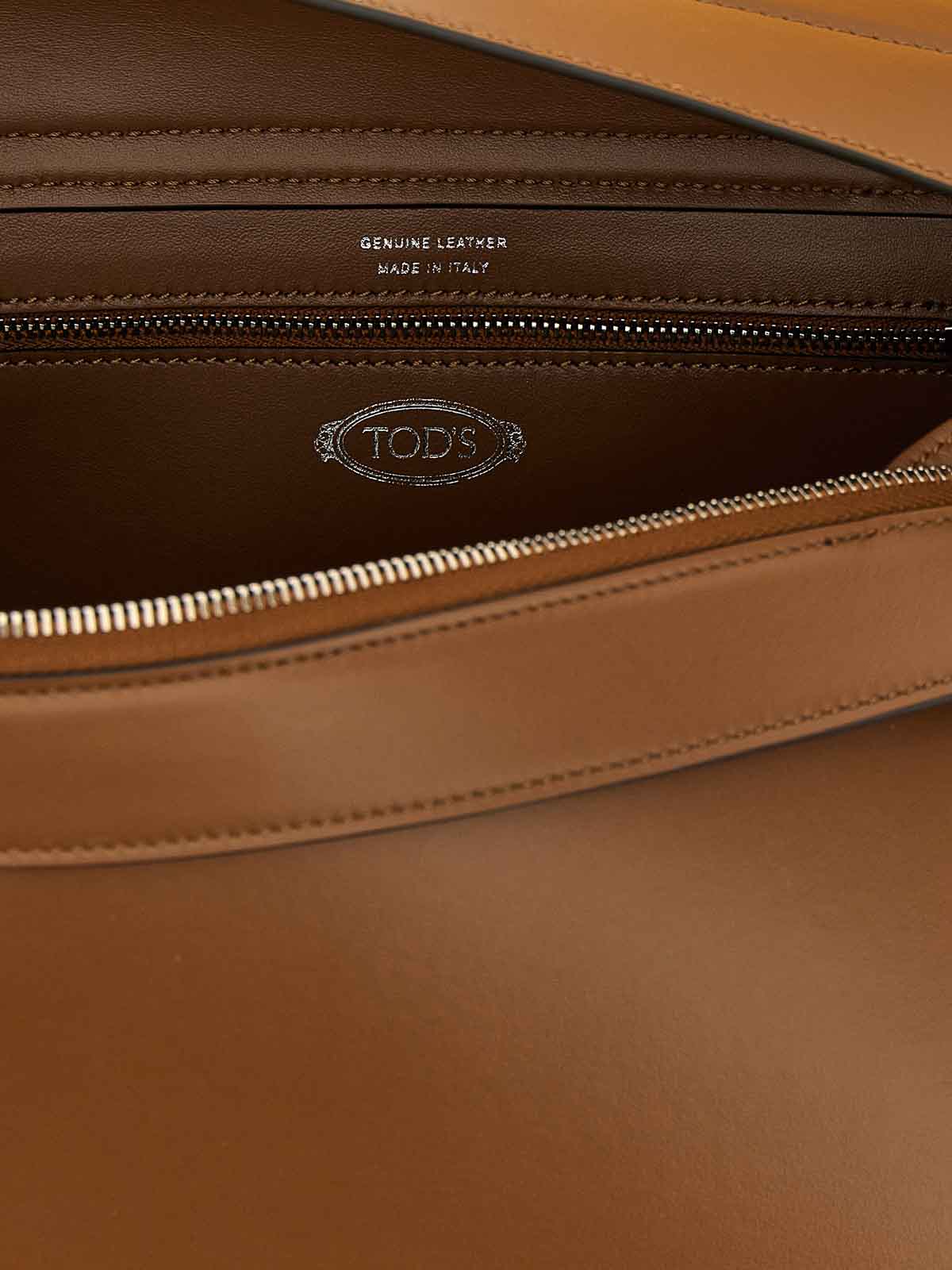 bolso de hombro Tod's wave de piel de becerro lisa con logotipo estampado en la parte delantera, asa fija, bolsillo trasero, cierre con cremallera oculta en la banda delantera que se puede fijar a los lados con botones a presión y espejo interior extraíble.