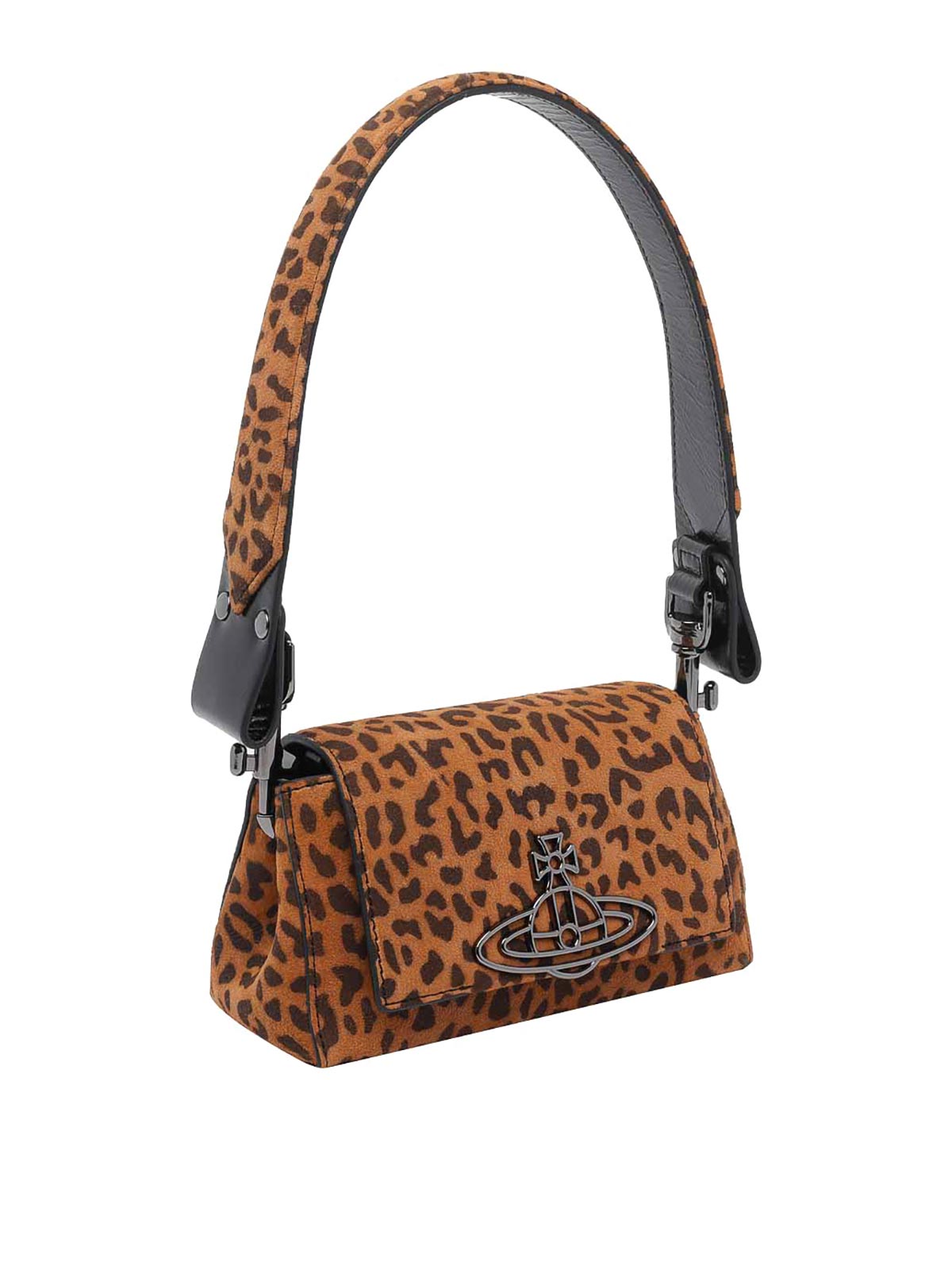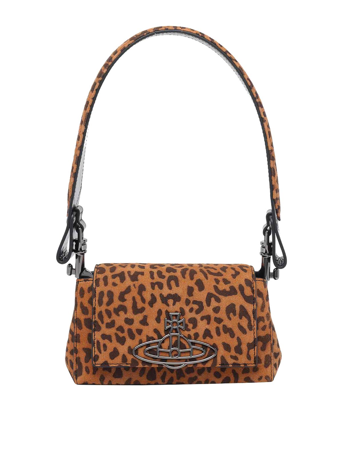 Bolso de hombro Vivienne Westwood, leopardo y avellana, cierre magnético, bolsillo interior abierto, hombro extraíble, correa de hombro con cadena extraíble, modelo pequeño
