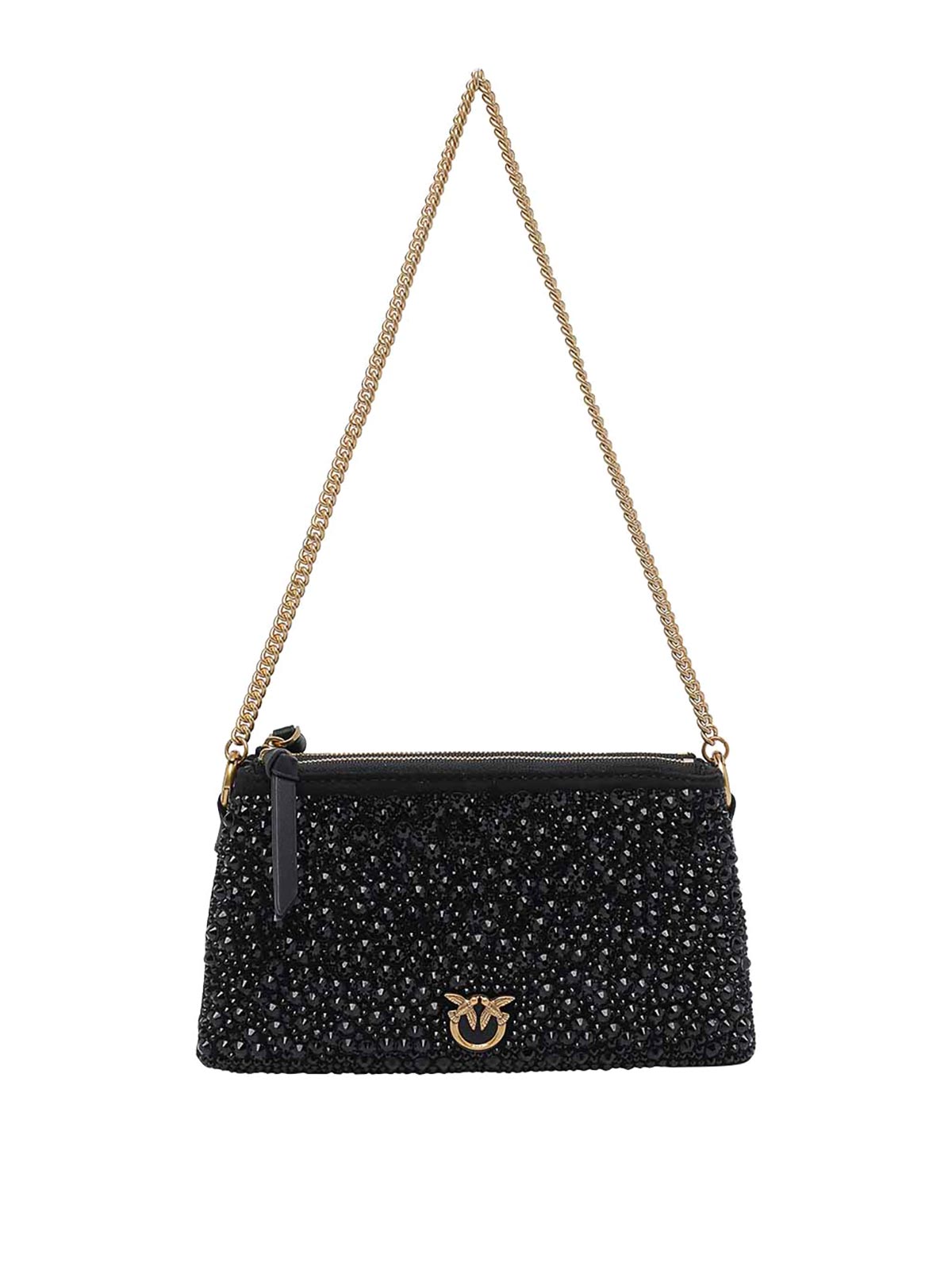 Bolso de hombro negro Pinko, cierre con cremallera, 2 secciones, bolsillo interior con cremallera, correa adaptable y extraíble, correa de cadena extraíble, minilogotipo frontal