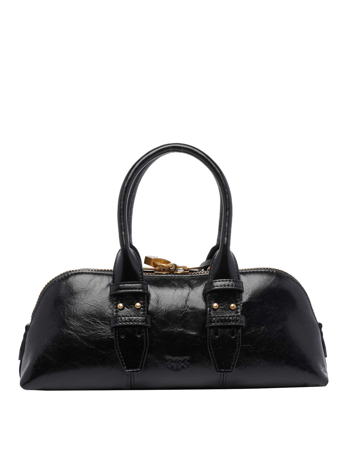 Bolsa baguette de bolos negra Pinko, cierre con cremallera, 3 ranuras interiores, 2 asas extraíbles, modelo de gamuza, logotipo frontal