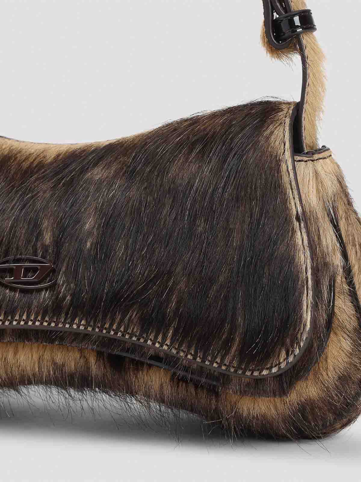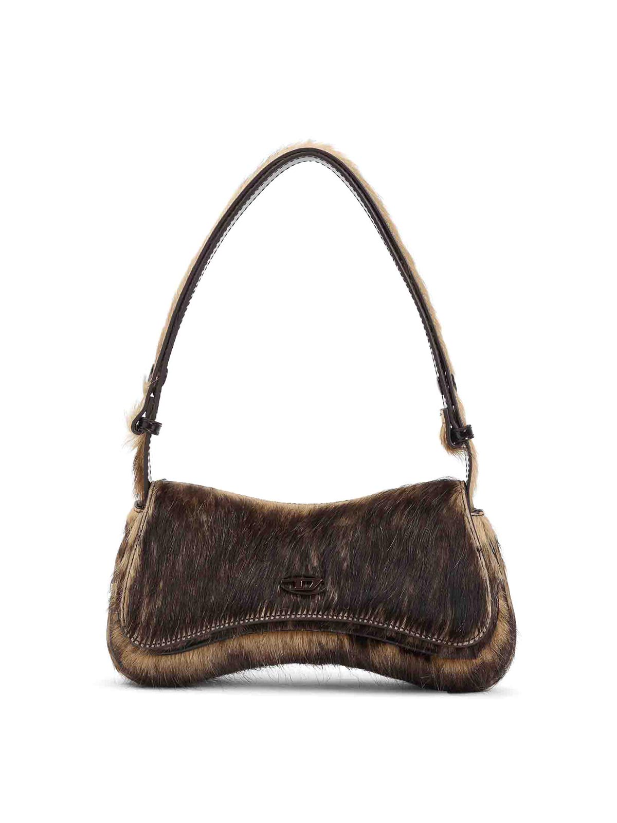 Bolso de mano Diesel Brown Play hecho a mano y con correa de hombro superior, solapa, bolsillo marrón a presión con el logotipo de la firma, un compartimento principal, diseño peludo en todas partes