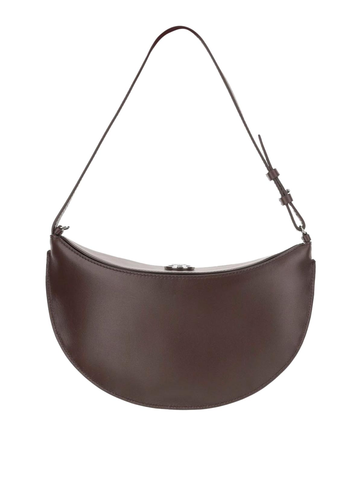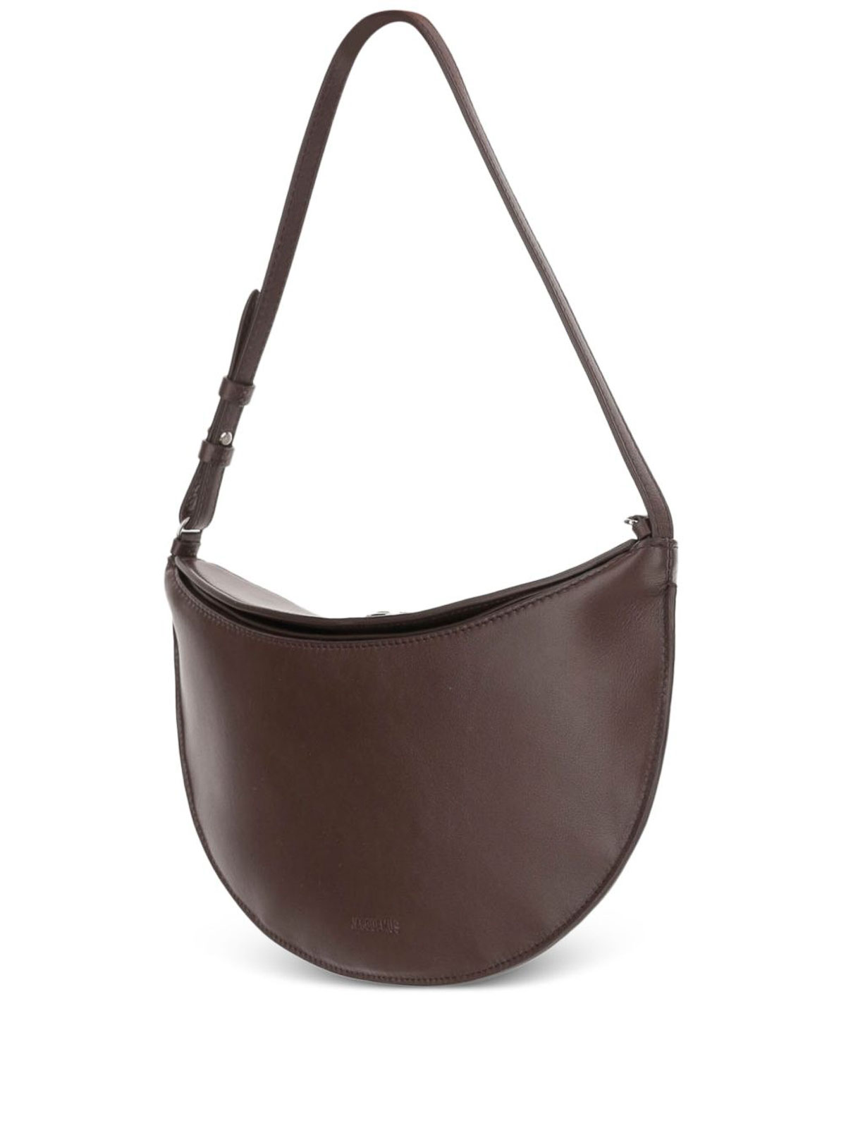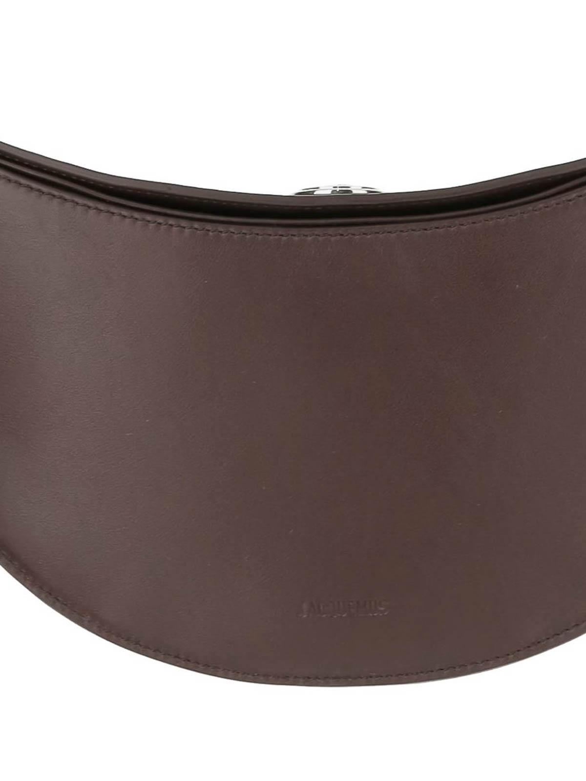 Correa de hombro fina ajustable de color marrón con estampado magnético con logotipo grabado a presión en forma de media luna