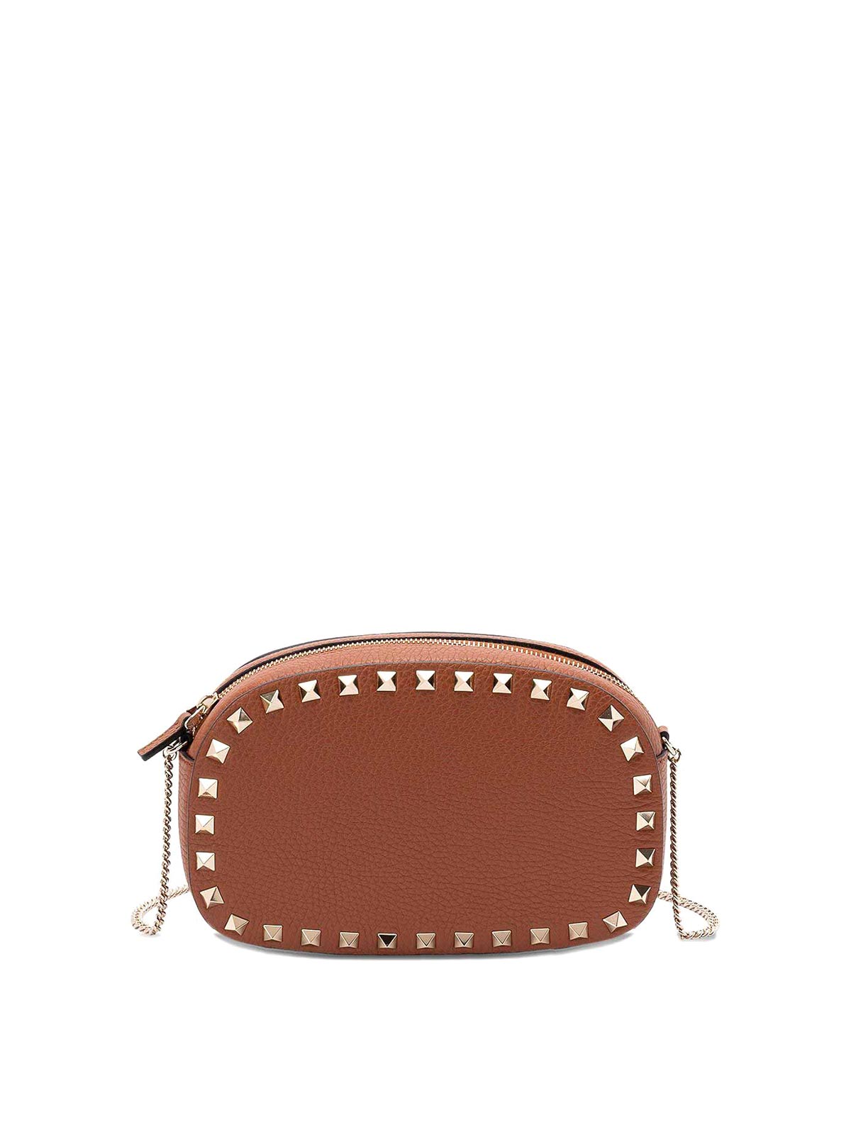 Correa de cadena Valentino lista para usar con cremallera marrón y adorno de tachuelas