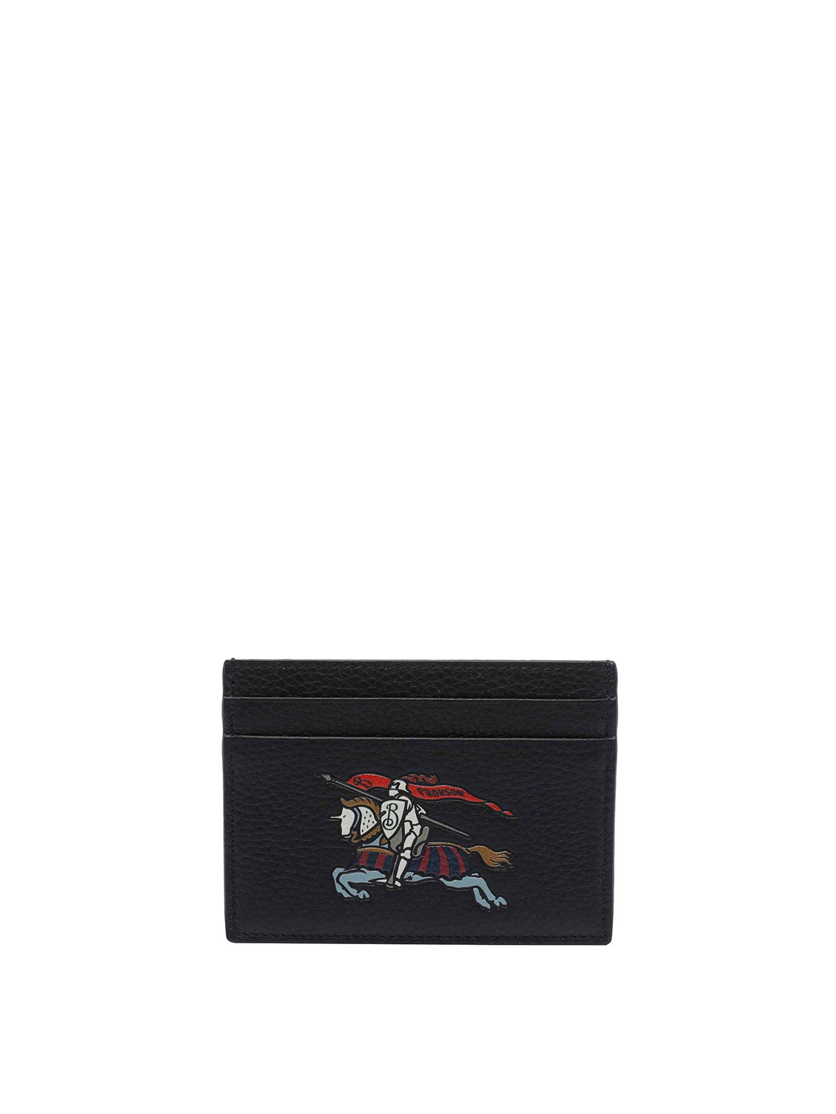 Tarjetero rojo Burberry, 4 ranuras, logotipo bordado en la parte frontal
