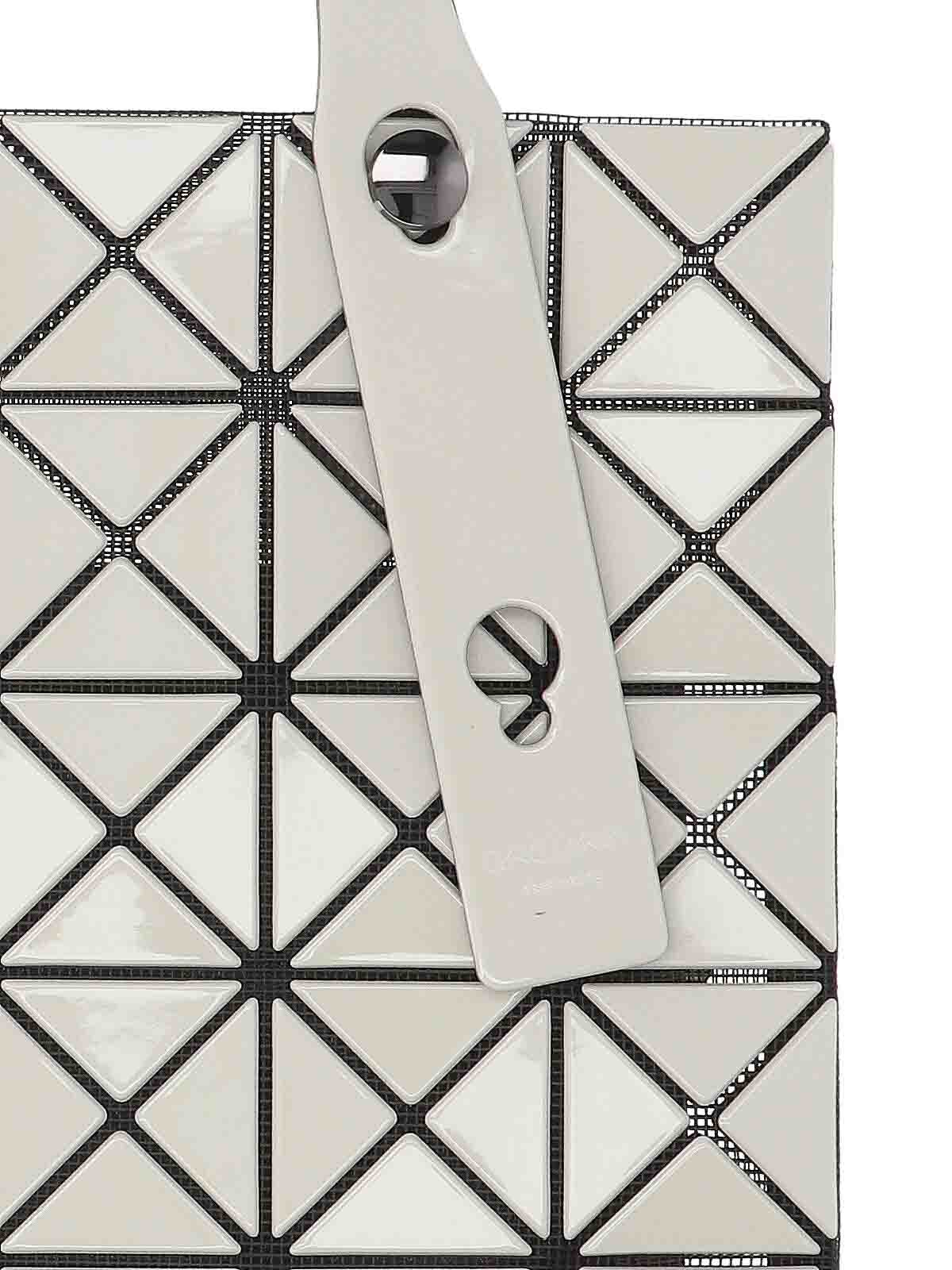 Bolso Bao Bao Prism, en PVC beige, dos asas ajustables, diseño con paneles, un compartimento interno, un bolsillo interno con cremallera.