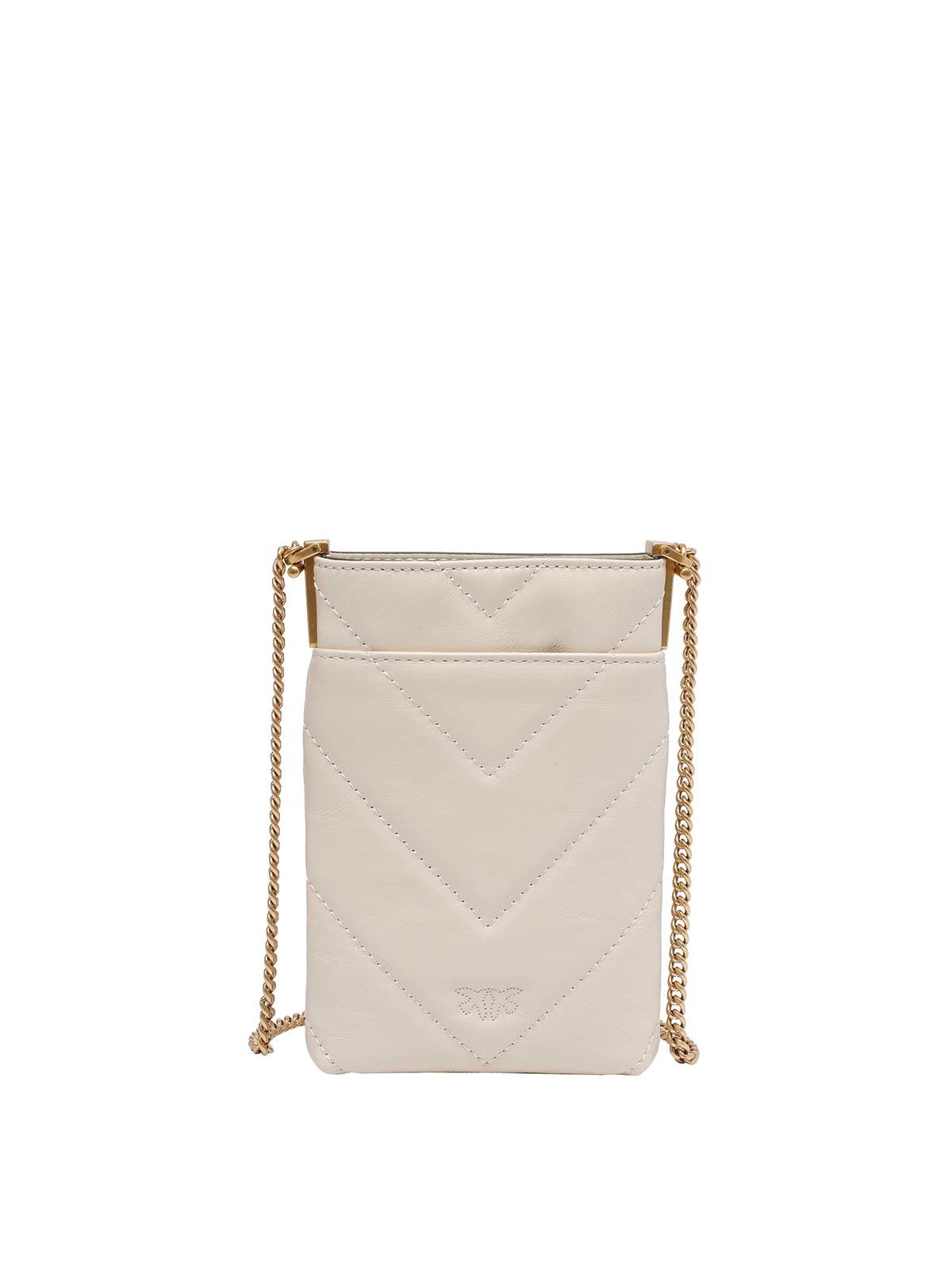 Funda de teléfono con monograma en blanco rosado, bolsillo externo, correa de cadena extraíble, strass en toda la prenda