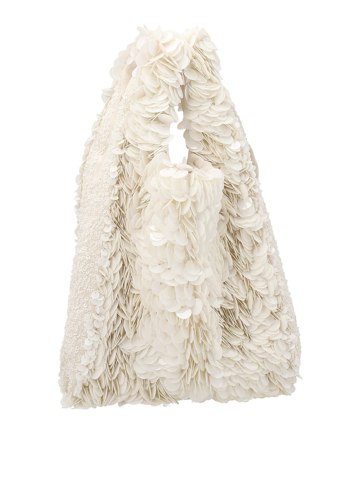 Bolsa de compras con logo en la parte delantera y adorno de lentejuelas.