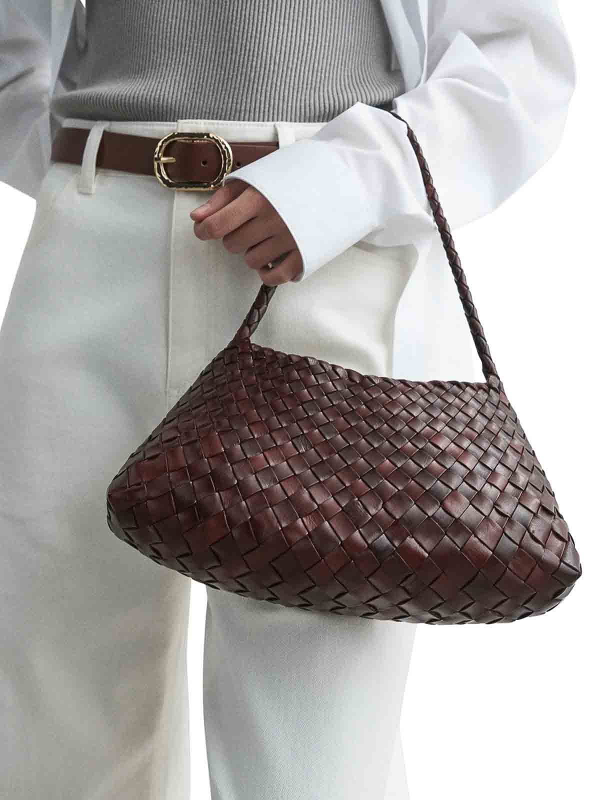 Minibolsa tejida a mano, sin forro, ancho superior, ancho inferior, largo, color bruciato