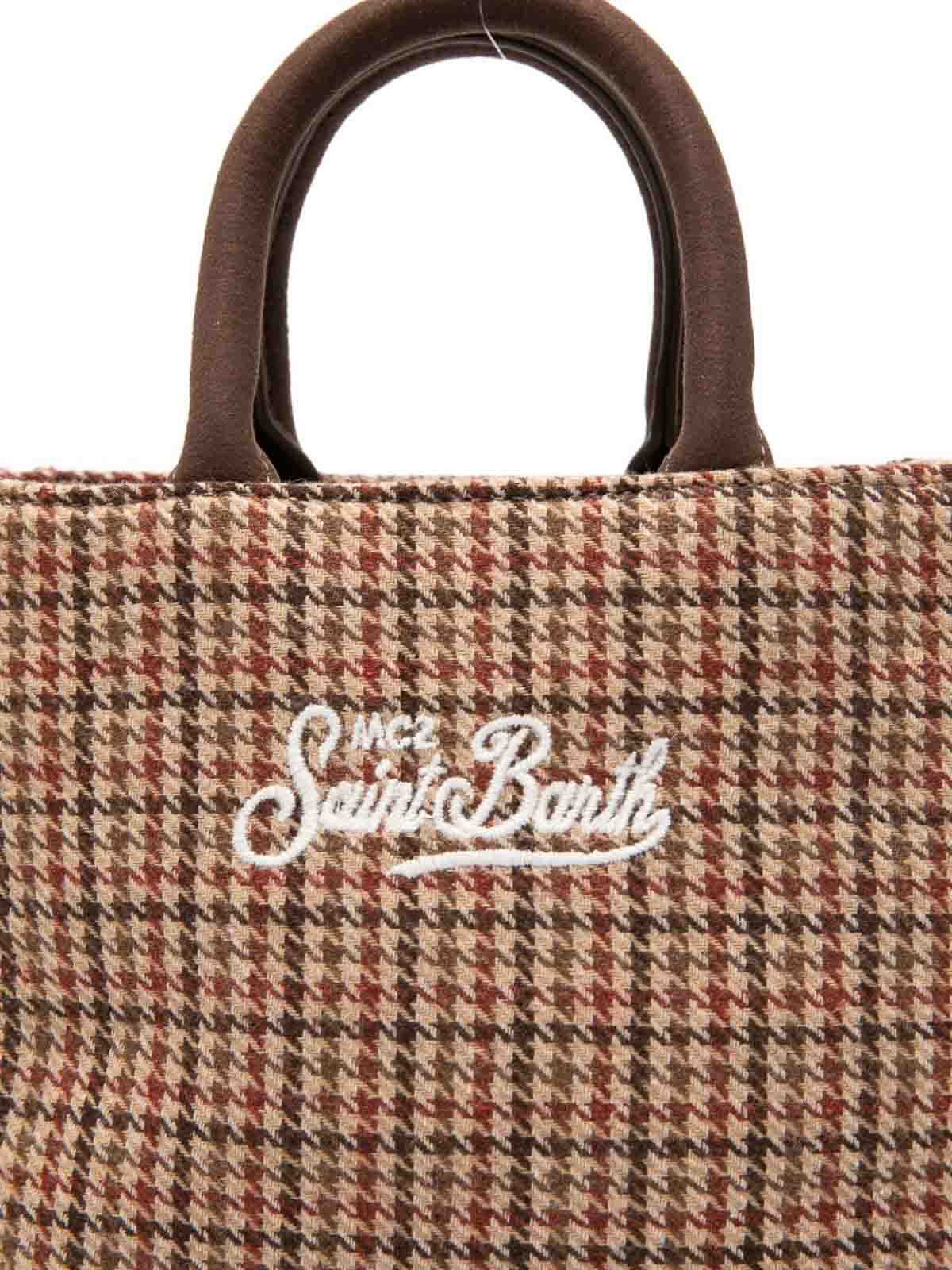 Minibolso de tocador con estampado de cuadros y estampado en tono marrón de mc saint barth con logotipo, un accesorio elegante y compacto perfecto para llevar lo esencial con un toque contemporáneo y divertido