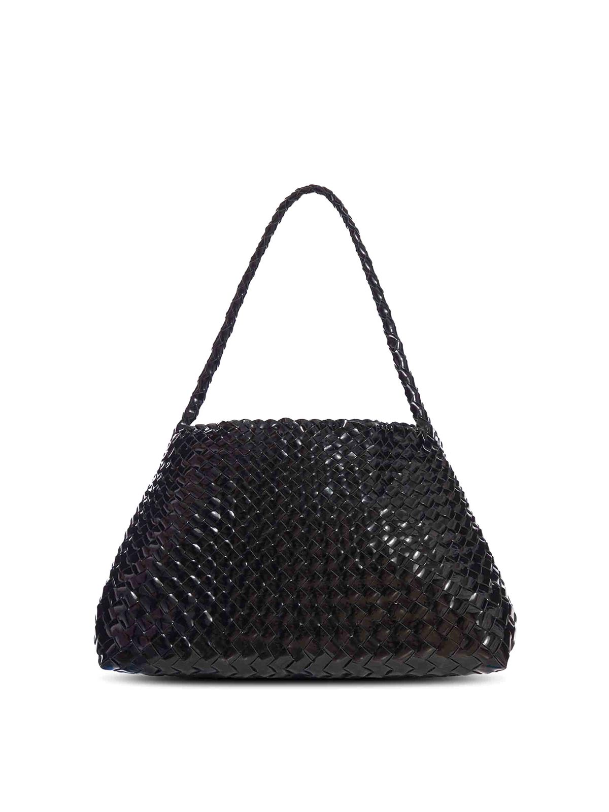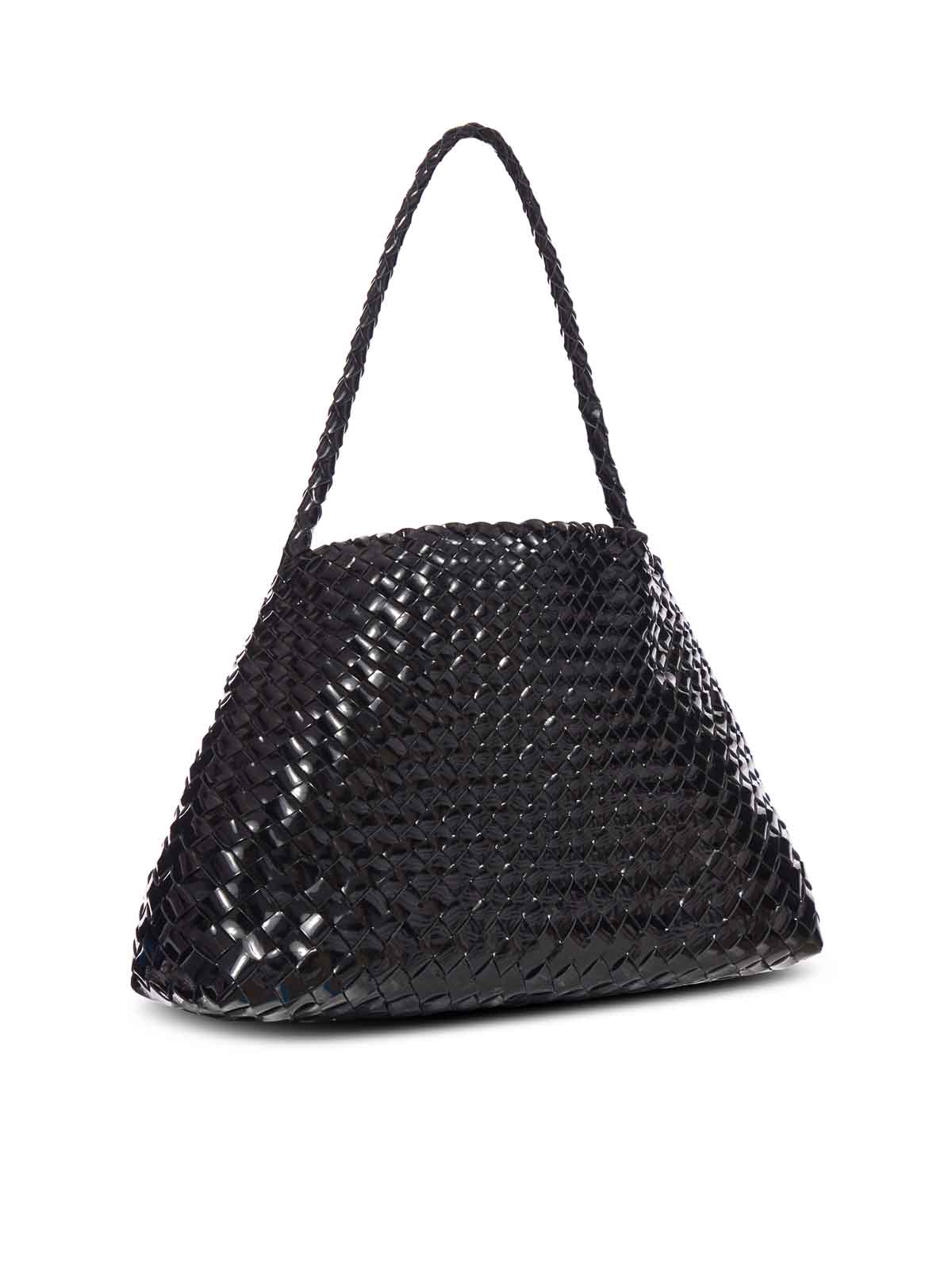 Cesta tejida a mano, cónica, sin forro, textura brillante, color negro