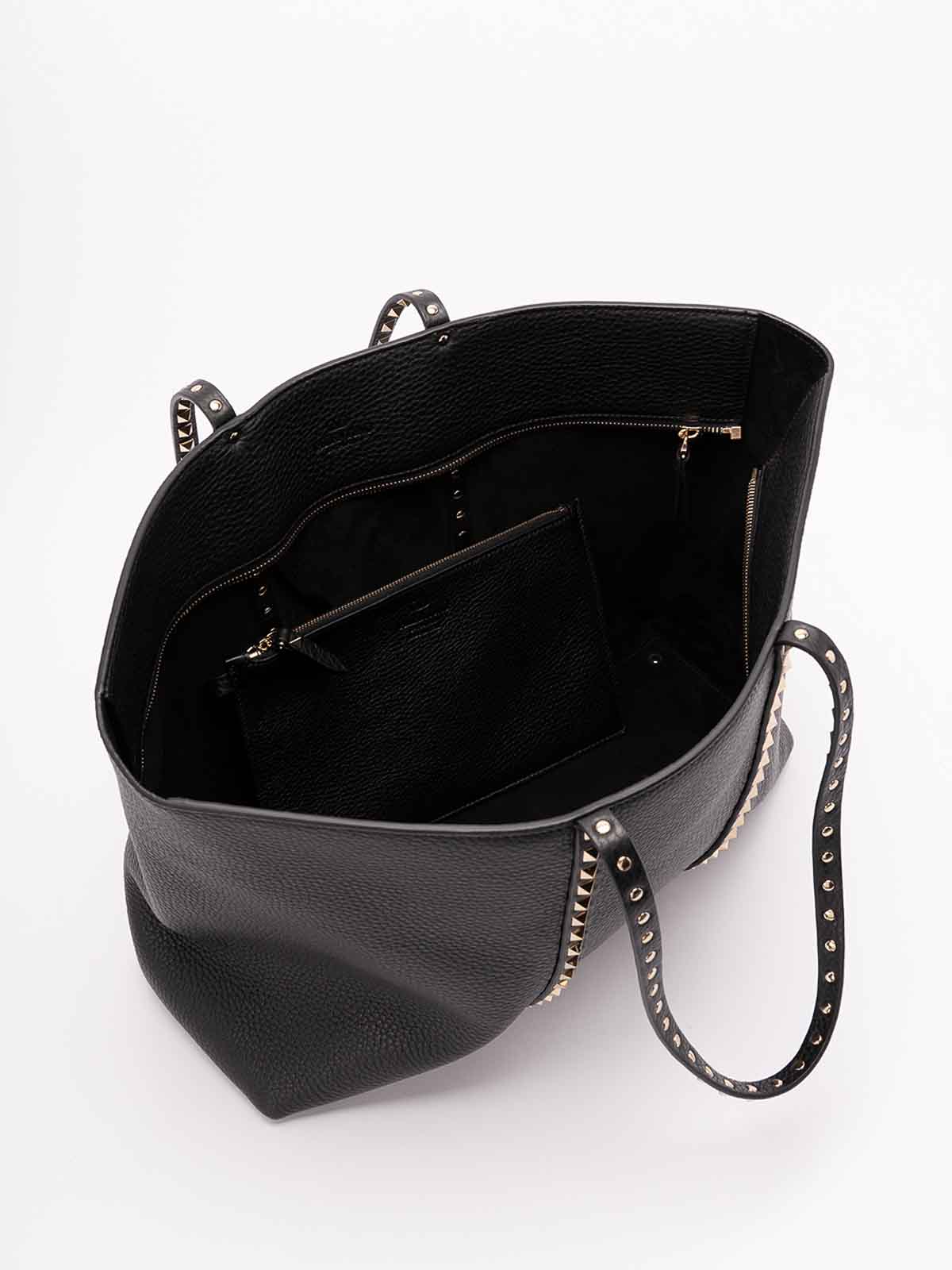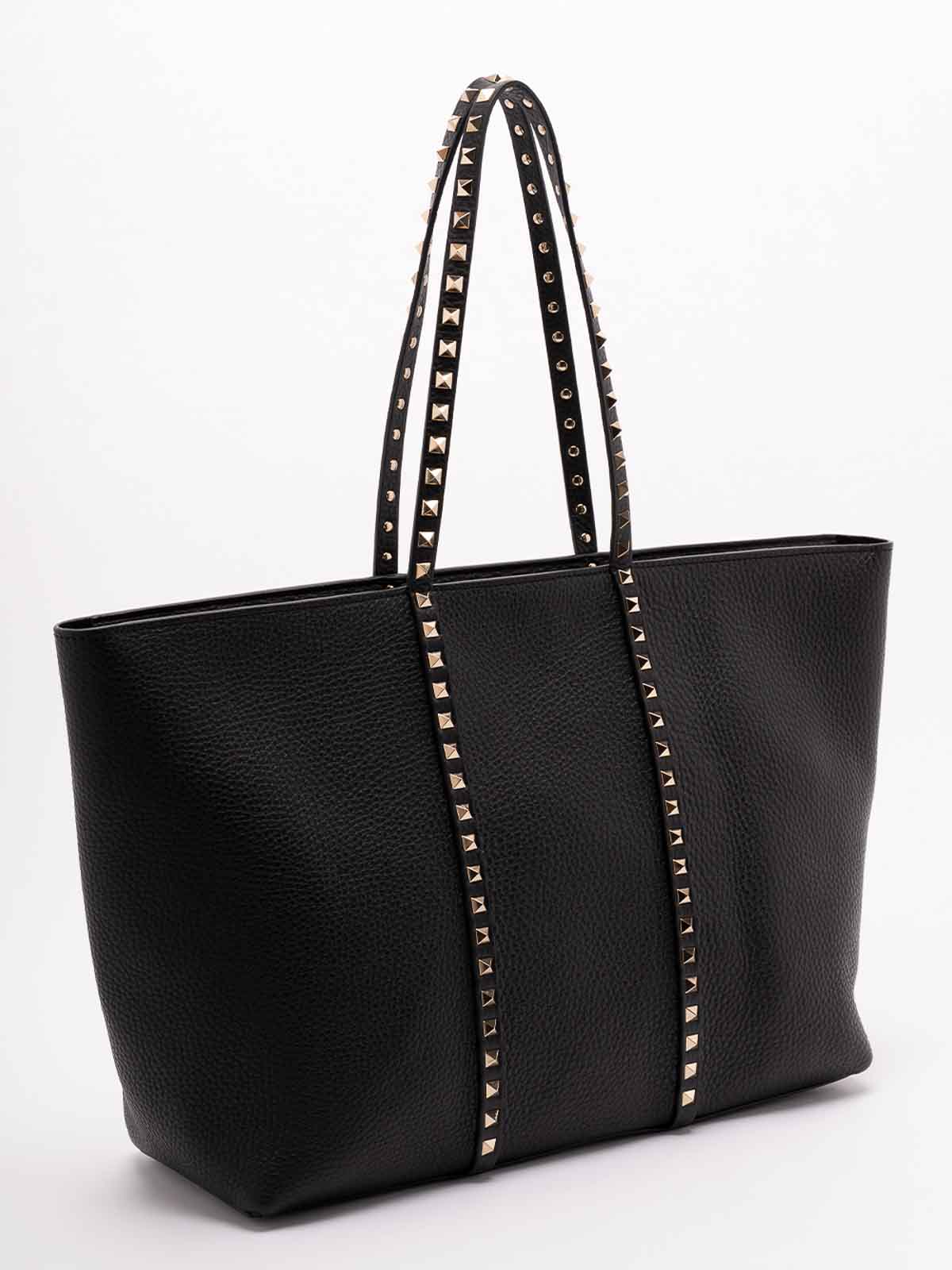 Bolso Rockstud de Valentino Garavani en granulado, el bolso se puede llevar cómodamente sobre el hombro con acabado en platino, tachuelas y herrajes. Bolsillo interior con cremallera y bolsillo abierto.