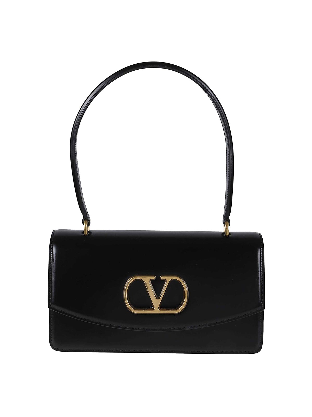 Bolso con asa Vain en piel de becerro brillante de Valentino Garavan con cierre magnético, forro de napa, interior: bolsillo con cremallera y bolsillo plano, el bolso se puede llevar en la mano o al hombro gracias al asa de piel con un logotipo metálico característico.