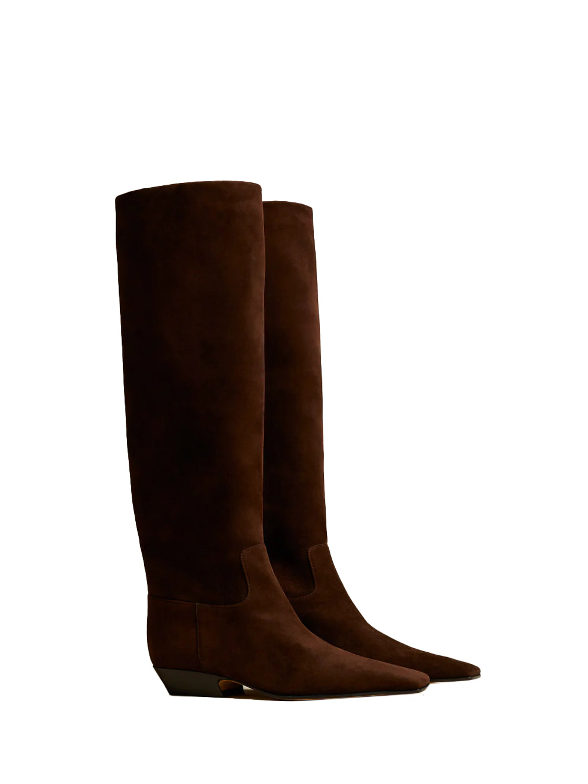 Esta elegante bota de punta cuadrada, que debuta con el vestuario de intuición de la colección anterior al otoño, está confeccionada en Italia en terciopelo y refinada con pespuntes tonales. La parte inferior proporciona estabilidad y comodidad para un uso prolongado, sin cierres, se pone para lograr un ajuste clásico.