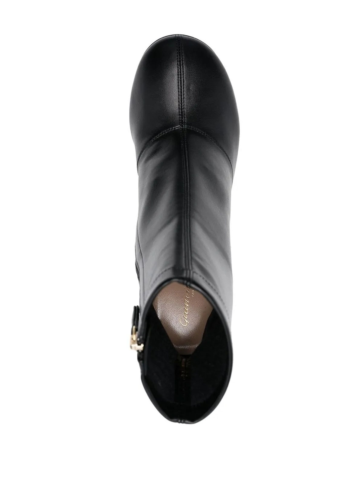 Diseñador negro azabache hasta el tobillo con cremallera lateral y punta redonda con la marca en mm esculpida