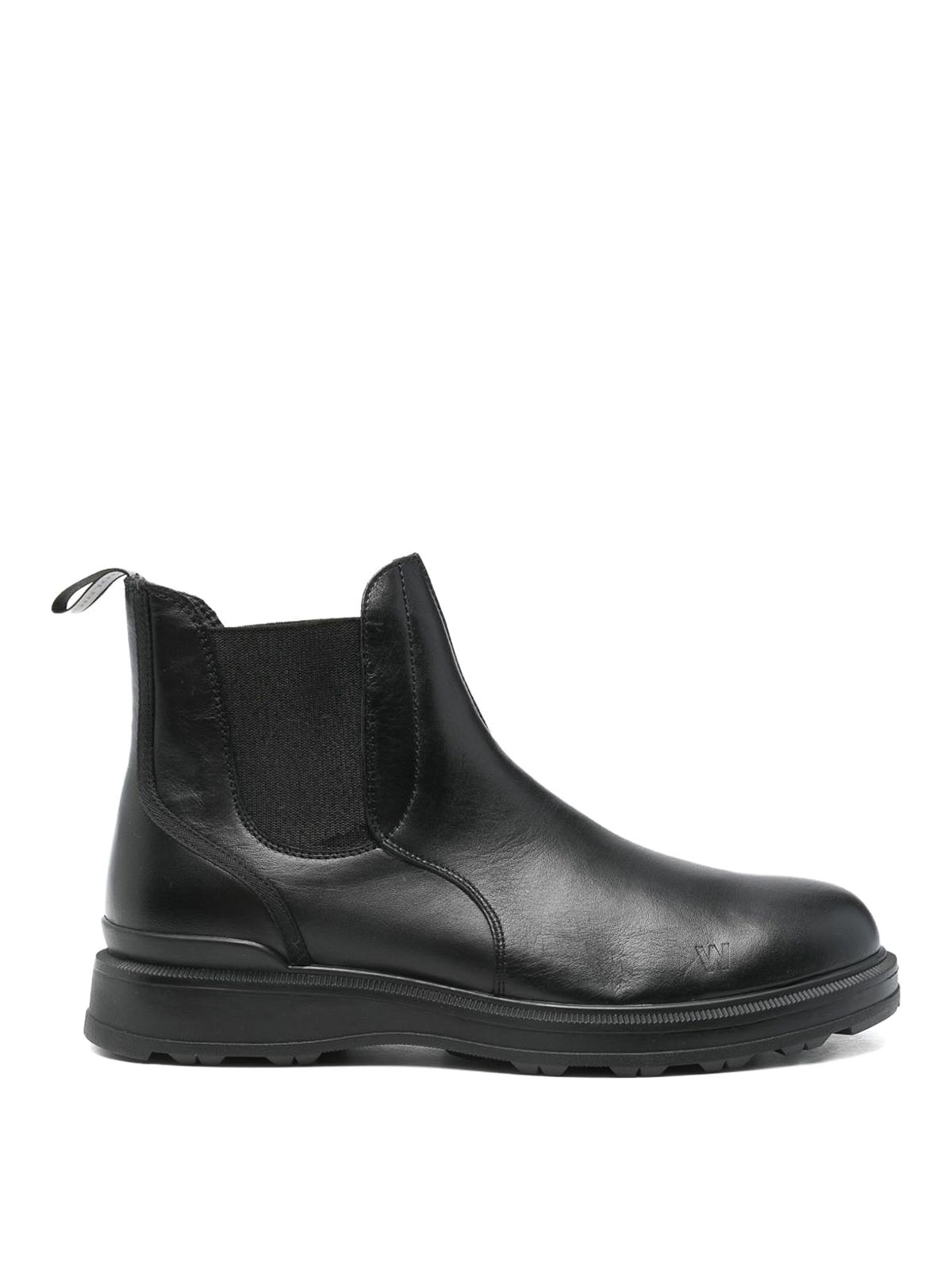 Paneles laterales elásticos negros, lengüeta para tirar en la parte trasera, puntera redonda, detalle de logotipo estriado