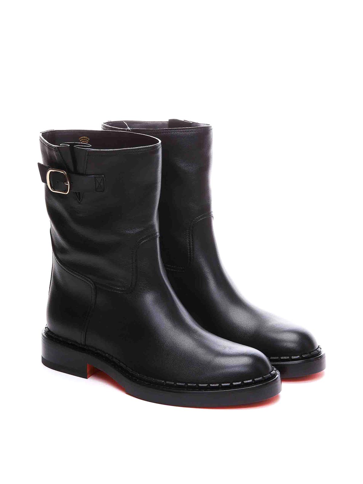 Botines negros Santoni, parte superior alta, cierre con cremallera, detalles de hebilla, punta redonda, parte superior de cuero y