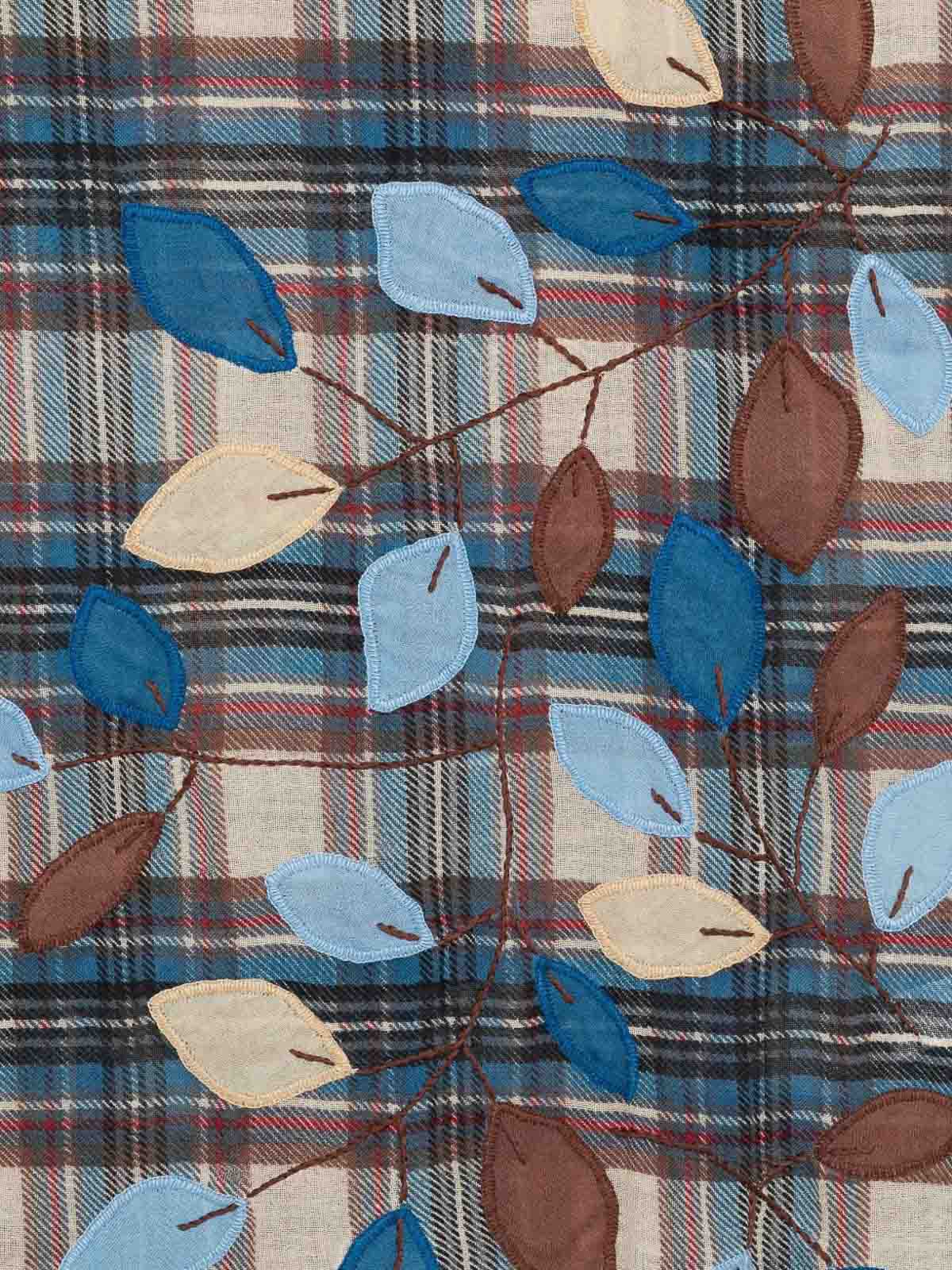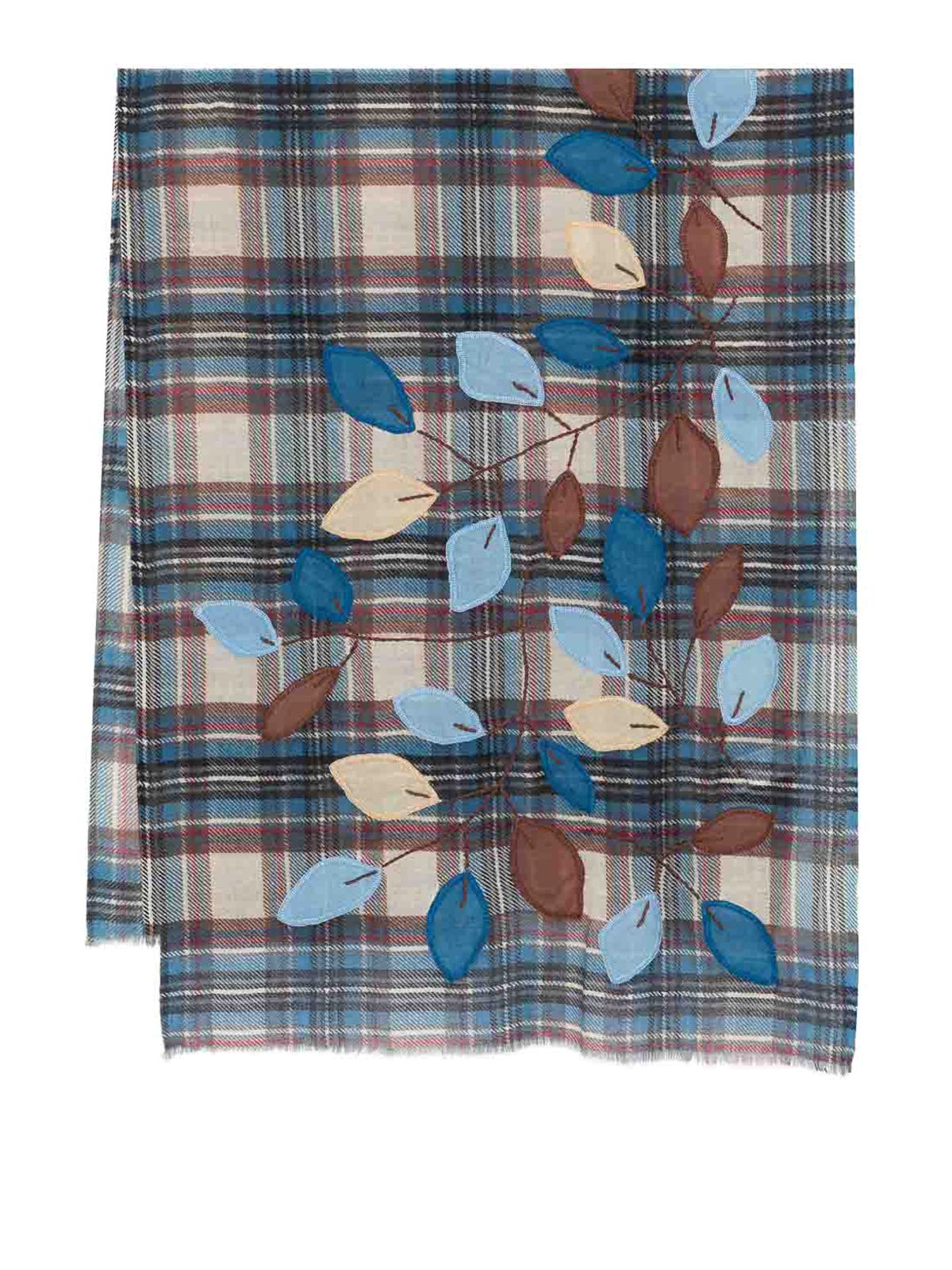 Bufanda orione a cuadros de tartán de sgombero cantine con apliques de hojas y borde deshilachado