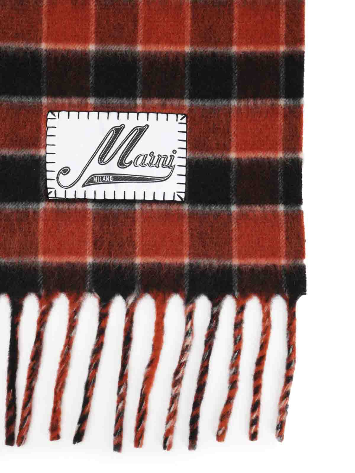 Pañuelo doble con estampado integral del Príncipe de Gales y flecos en los extremos de Marni, rematado con una etiqueta grande con el logotipo de Marni en cursiva