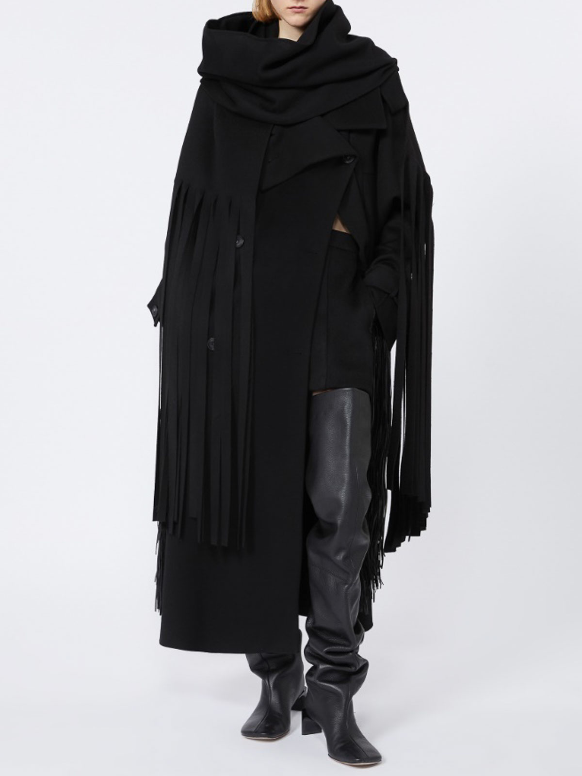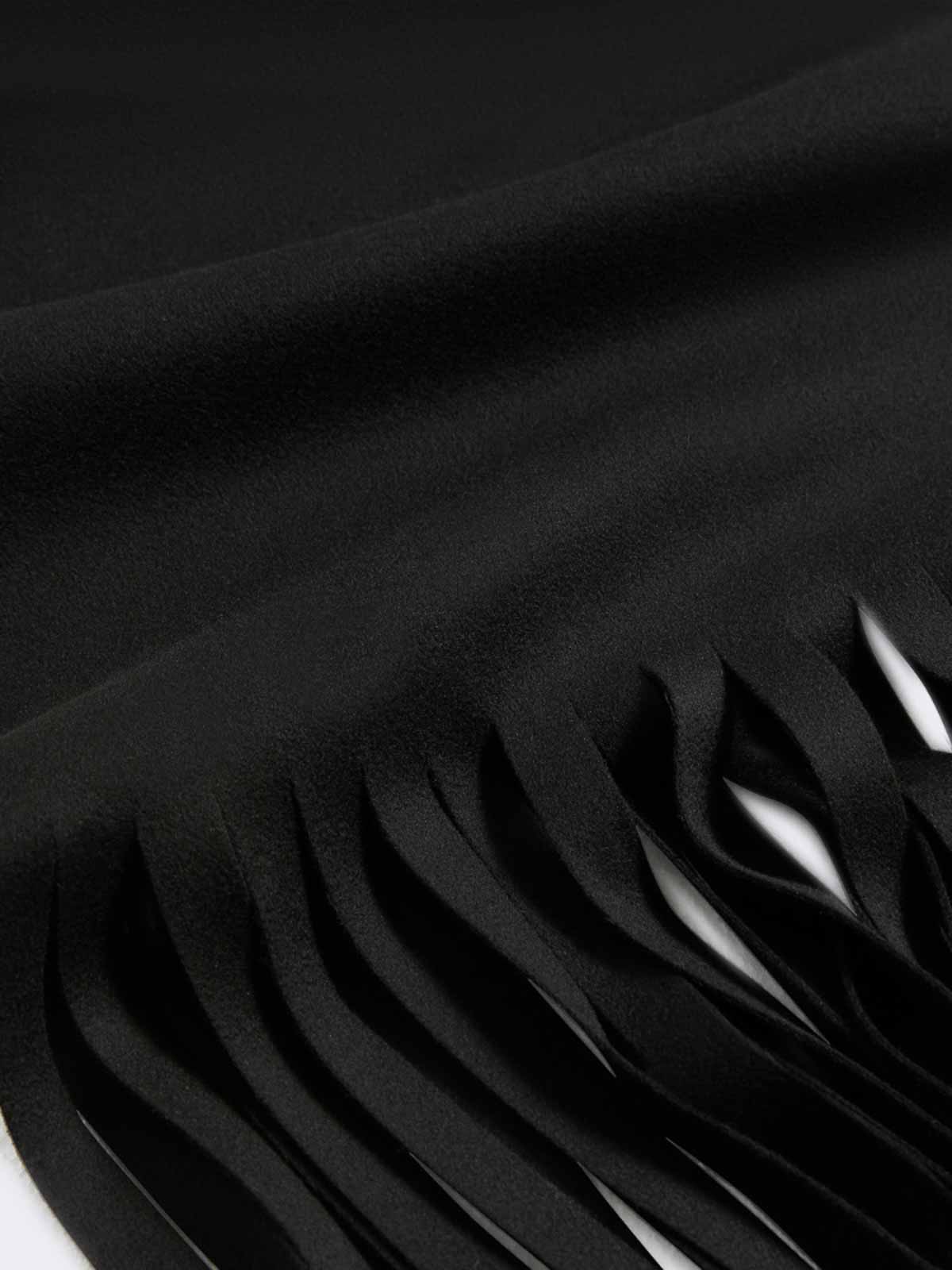 Bufanda de suave capa doble de lana pura, decorada con flecos largos con corte crudo en la parte inferior