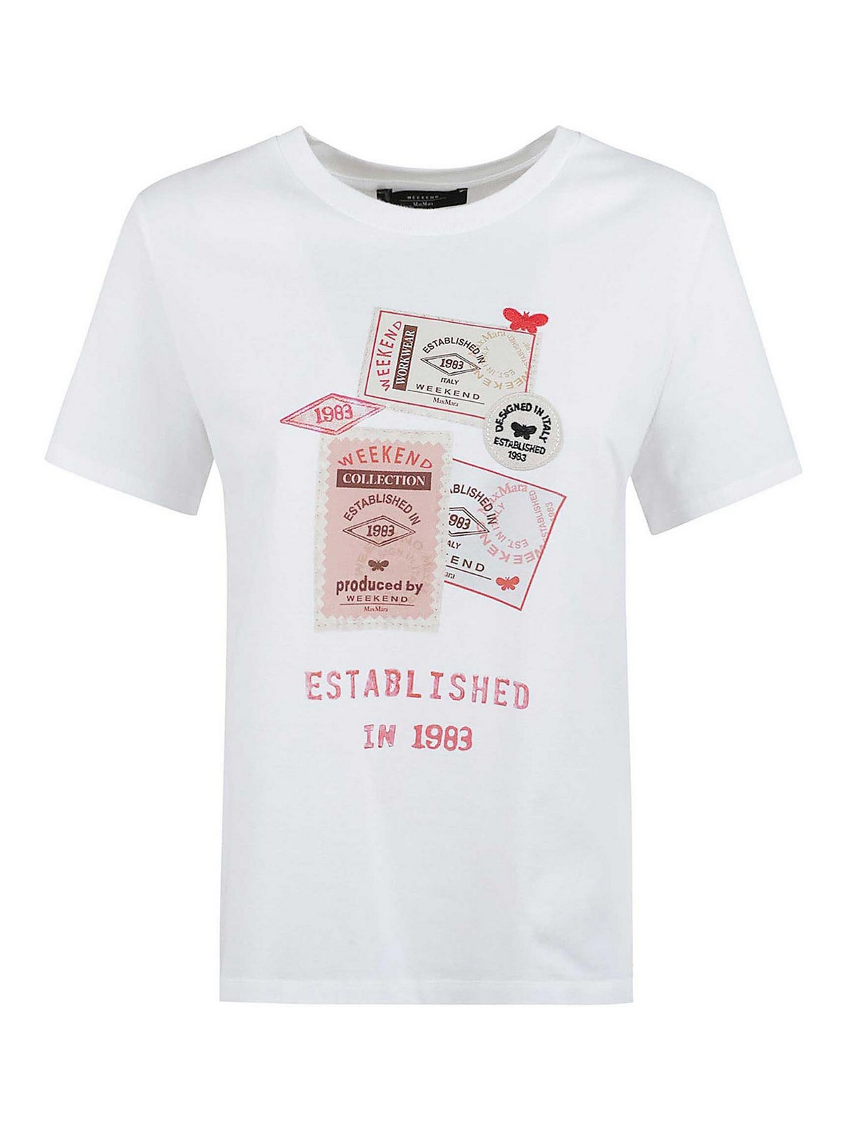 Camisetas de punto con estampado icónico y cuello acanalado bordado