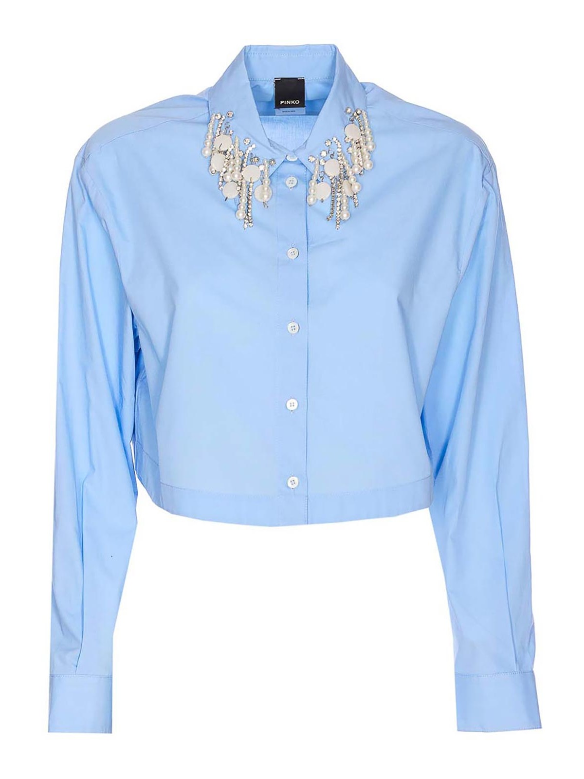 Camisa rosa café café claro, cierre con botones, cuello regular, detalles de dijes aplicados en el cuello, mangas largas, botones en los puños, modelo corto