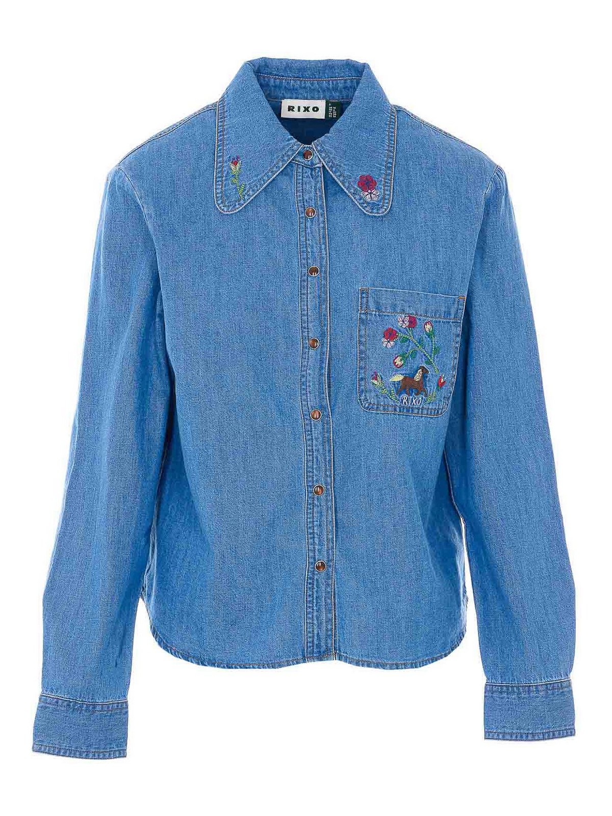 Camisa de cambray de algodón Rixo edaline, bordado en la parte delantera, manga larga