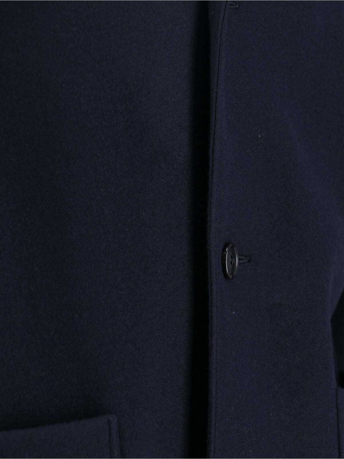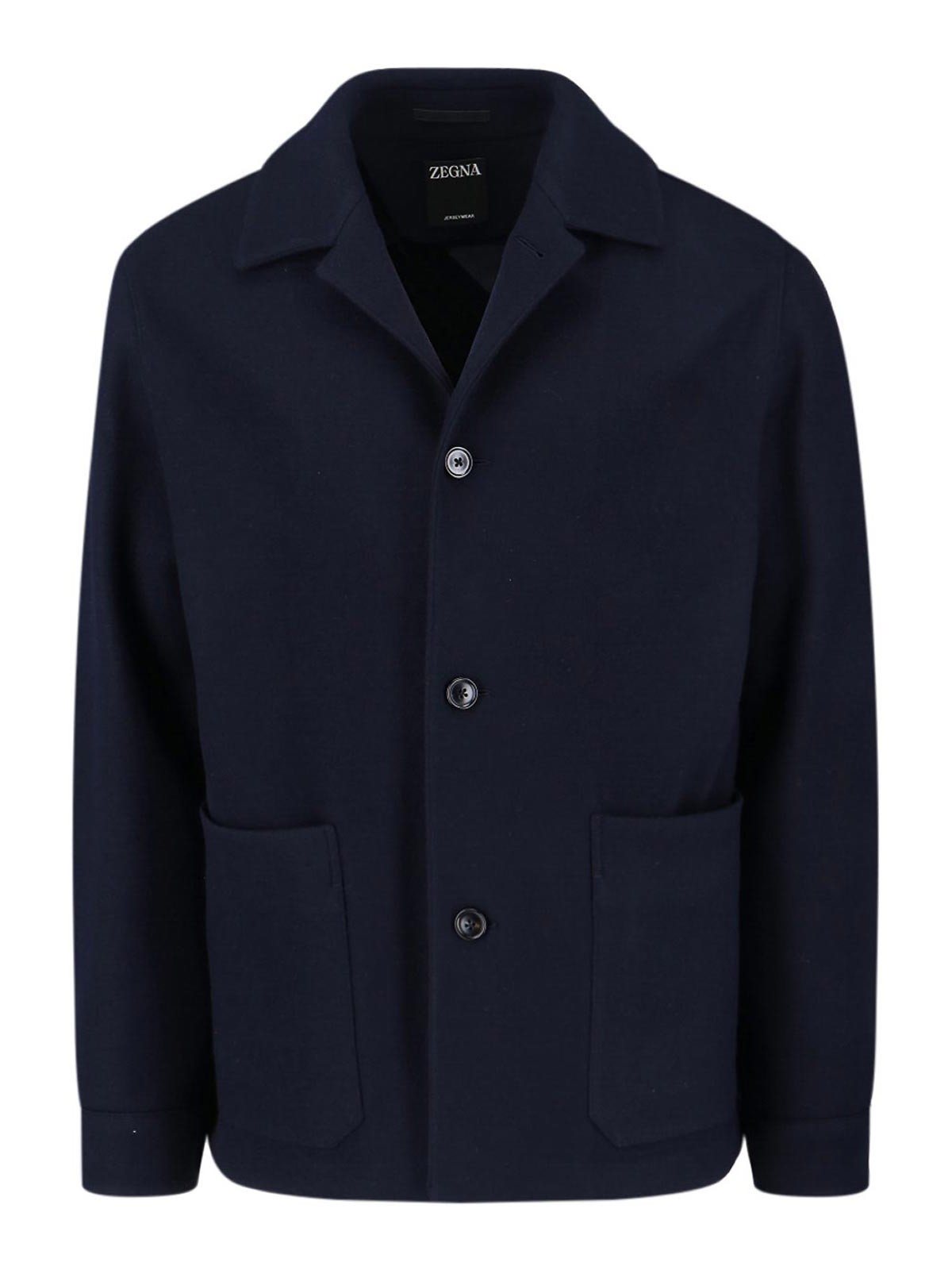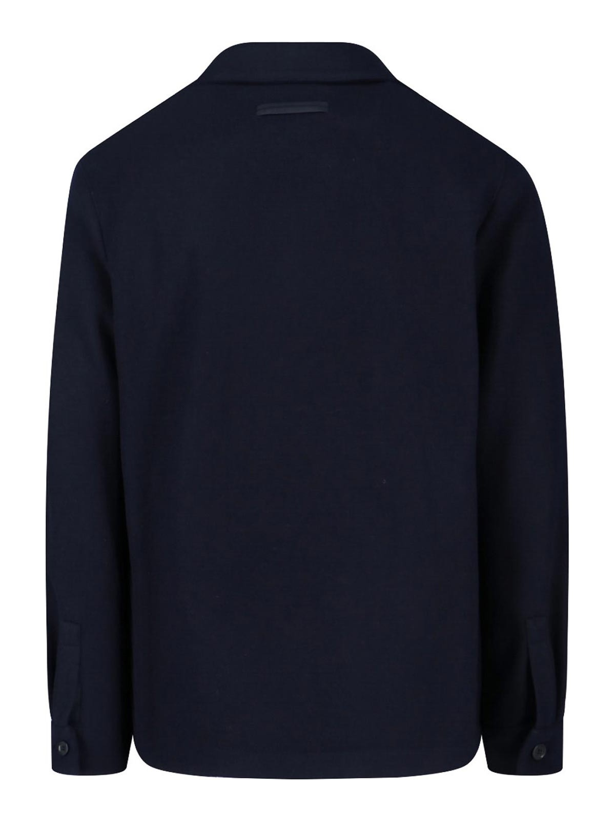 Chaqueta camisera Zegna en mezcla de lana y cachemir, azul marino, solapas clásicas, cierre con botones, dos bolsillos laterales de parche, etiqueta tono sobre tono en la parte posterior, puños abotonados y dobladillo recto.