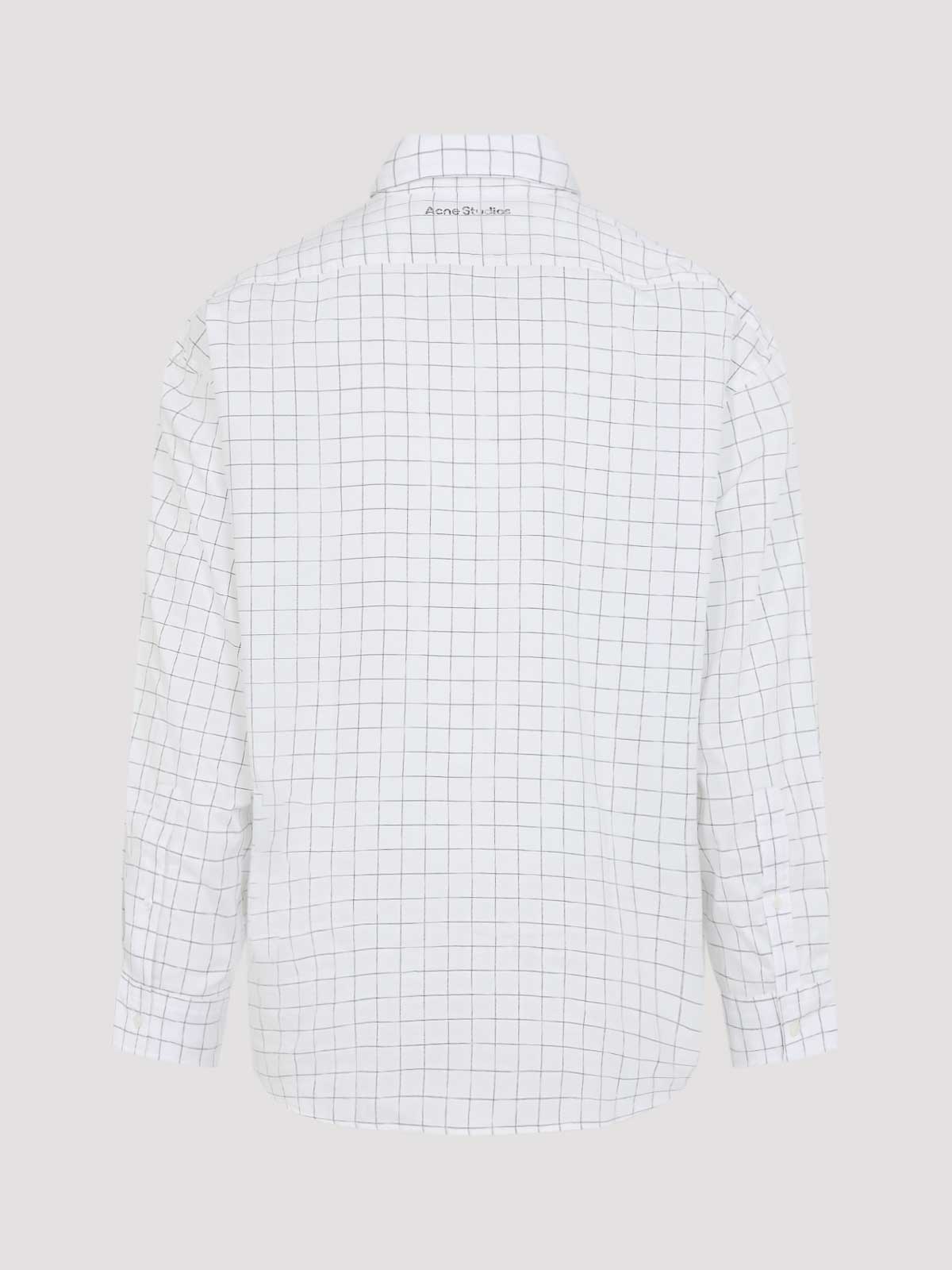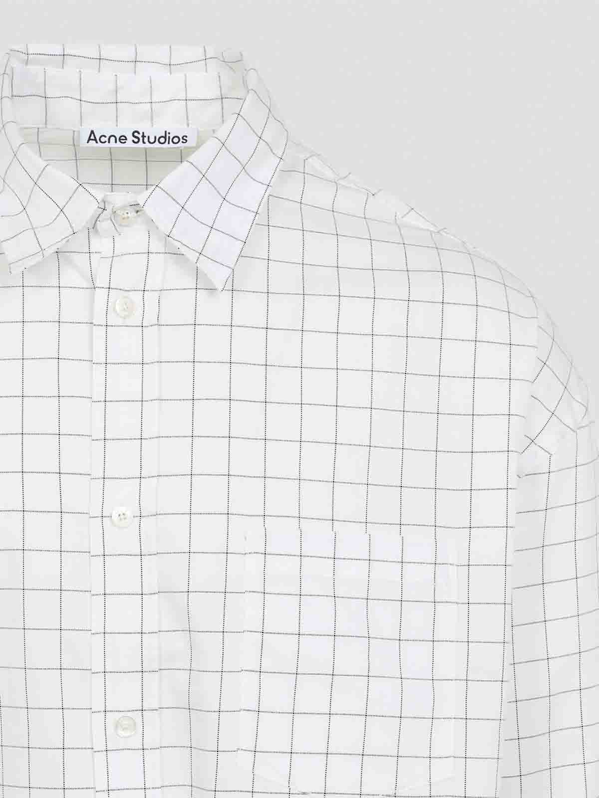 Camisa de algodón de Acne Studios, confeccionada en algodón blanco y negro a cuadros, con cuello puntiagudo, cierre con botones en la parte delantera, bolsillo plano en el pecho, hombros caídos, mangas largas con puños abotonados, canesú trasero con detalle de logotipo, dobladillo redondeado y corte holgado.
