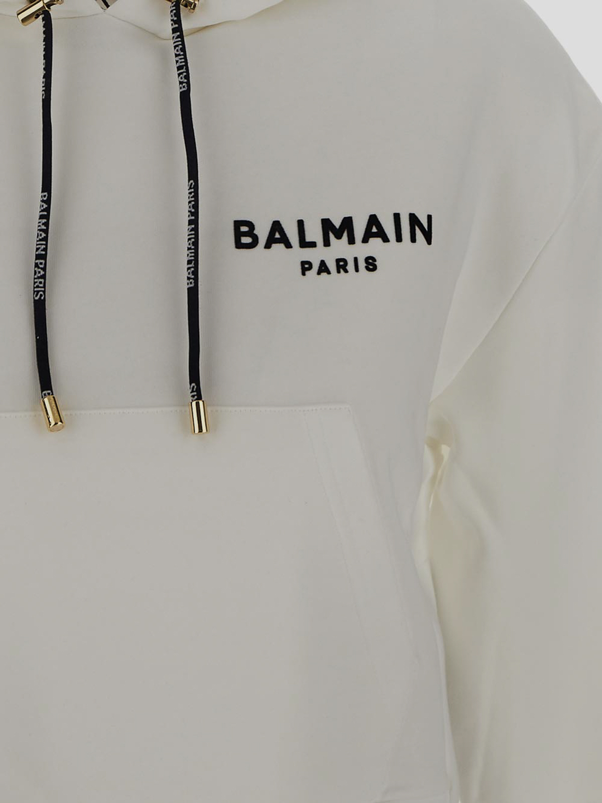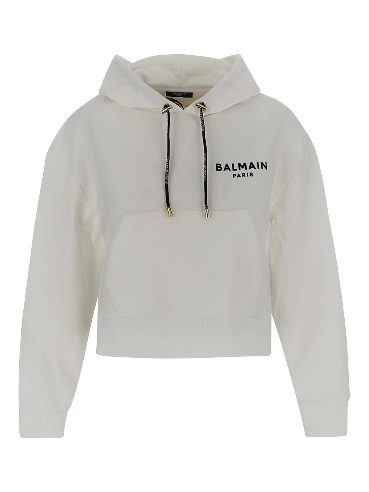 Sudadera corta con el logotipo de Balmain en algodón blanco