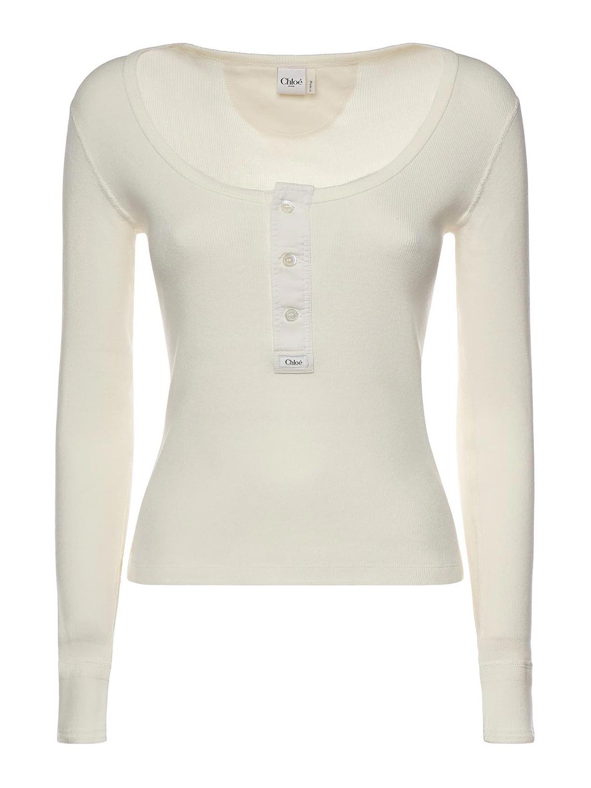confeccionado en jersey acanalado de algodón orgánico, cierre con botones, manga larga, la talla que se muestra es xs, color del diseñador: icónico leche