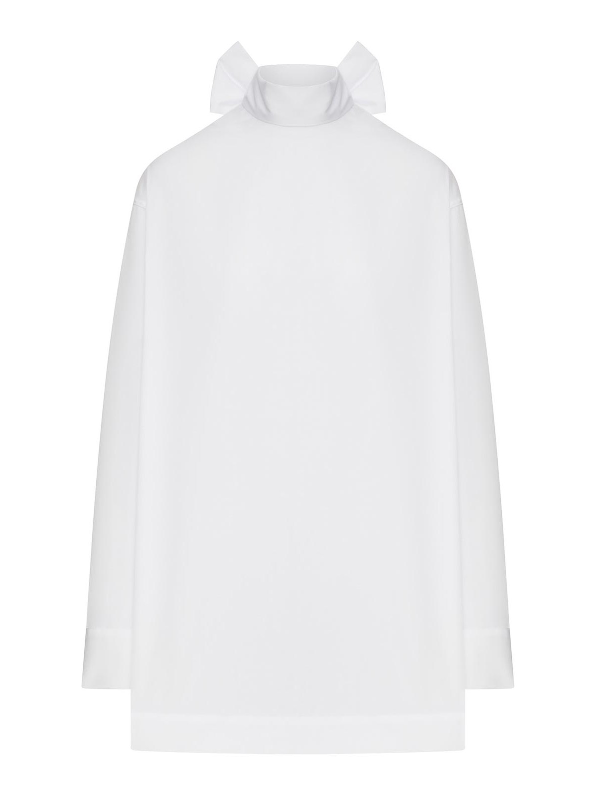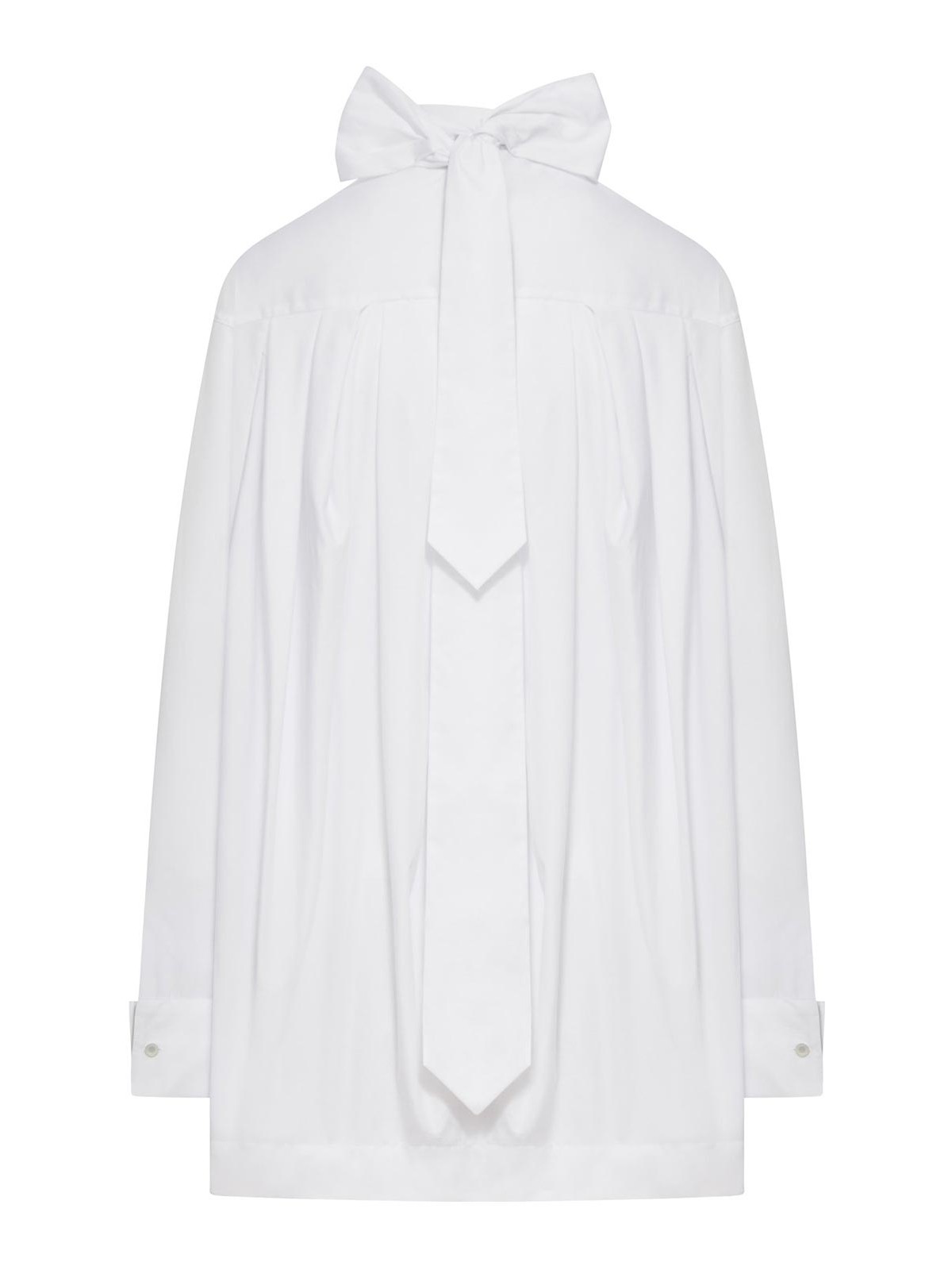 Cuello alto, lazo en la espalda, mangas largas, puños abotonados, dobladillo recto, talla grande, - color blanco