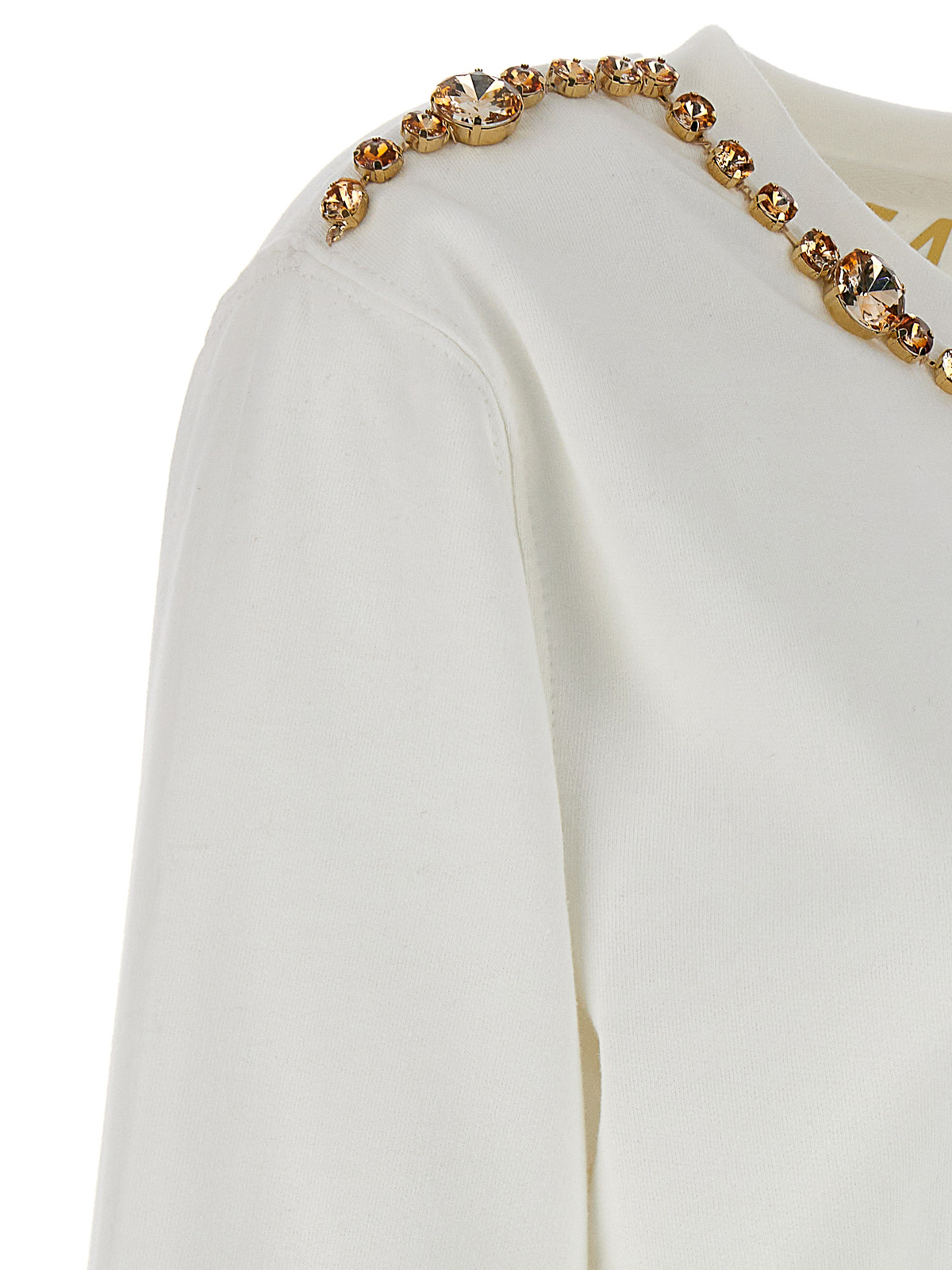 Sudadera Aurora de algodón con cuello redondo, manga larga, puños y detalle de pedrería en los hombros, corte corto