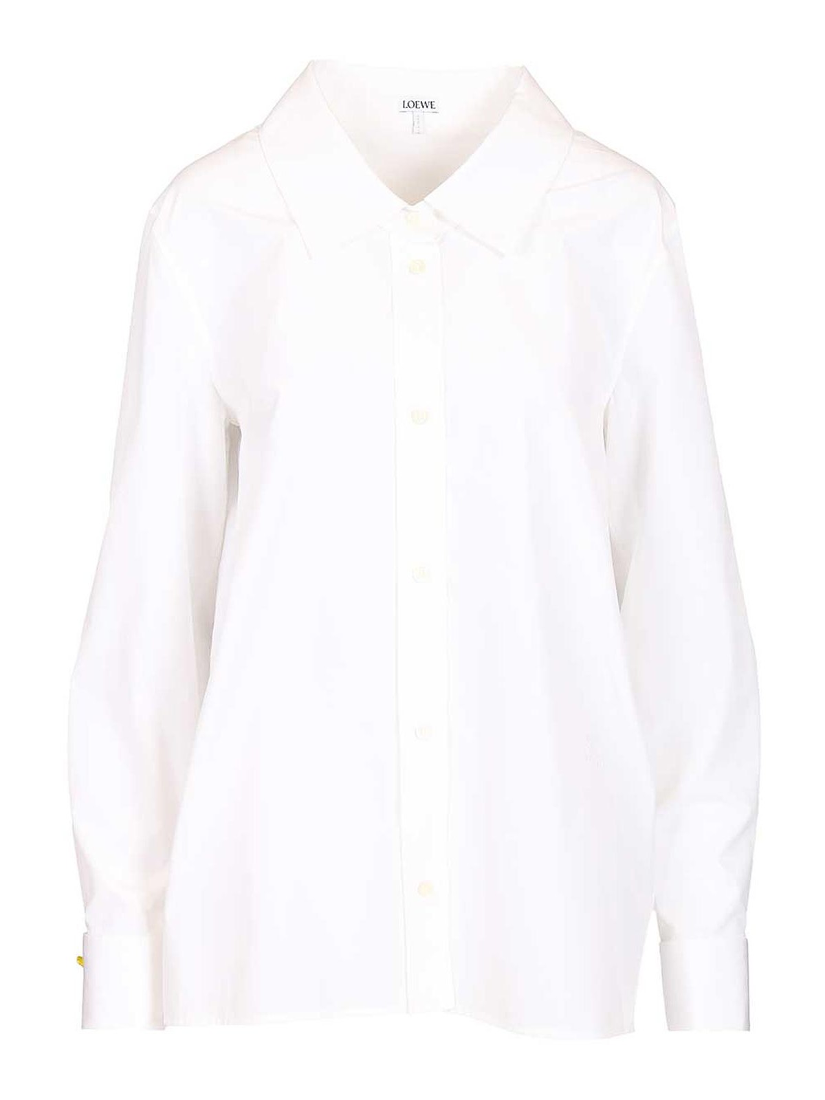 Camisa de popelina de algodón de loewe con puños franceses y gemelos acróbatas, un cuello clásico con escote caído, un botón, un pliegue invertido en forma de caja en la parte posterior y un aplique de anagramas en la